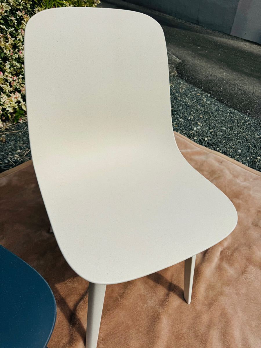 オドゲルチェアのデザインは、スキーブーツと、底取れ式のパイ皿がインスピレーションになっています。その理由は、シートと背もたれに手早く簡単に足を固定する方法を見つけるため。そして最終的に、留め具をカチッと倒すだけで組み立てられるソリューションができました。もうひとつ革新的な点は、再生可能な木材とリサイクルプラスチックの混合素材を使用していること。こうして、無駄のないすっきりとしたラインのチェアが完成しました。体を包み込むような丸みのあるシートと背もたれで、とても快適な座り心地です。
