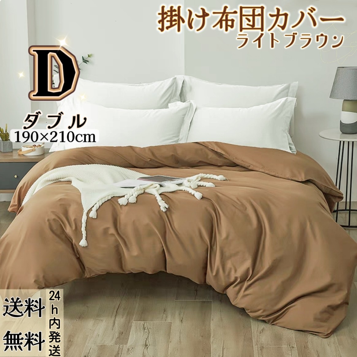 【単品売り】布団カバー 掛け布団カバー ふとんカバー 肌触りの良い 寝具カバー 洋式・和式兼用 四季兼用 通気 速乾 掛ふとんカバー 柔らかい 丸洗い可能(ダブル・190*210CM ライトブラウン)