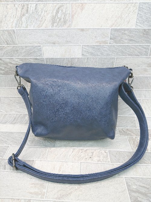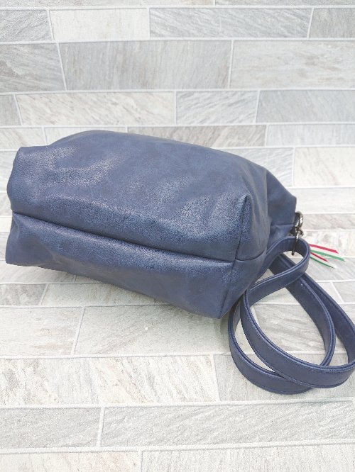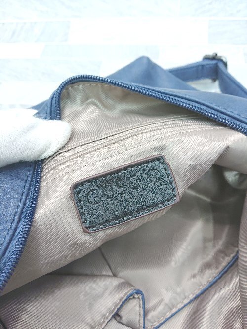 ◇ Θ GUSCIO グッシオ フェイクレザー ショルダー バッグ ネイビー レディース P