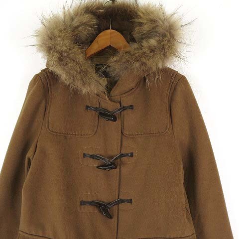 ノーブル NOBLE コート ダッフルコート ラクーン ファー フード ショート丈 M 38 キャメル ブラウン レディース