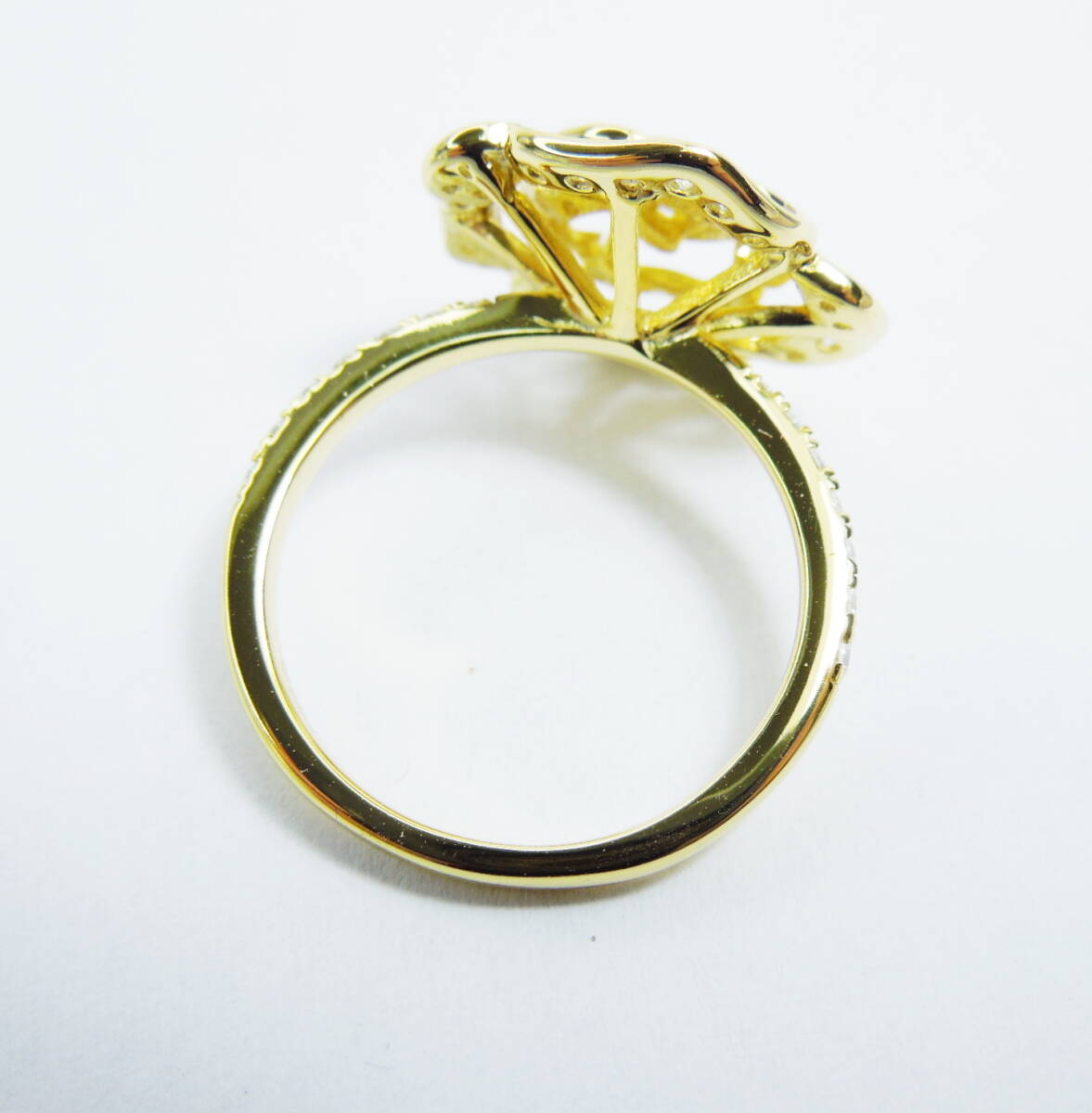 薔薇の花びら部分に沿って様々なサイズのモアサナイトが散りばめられております。