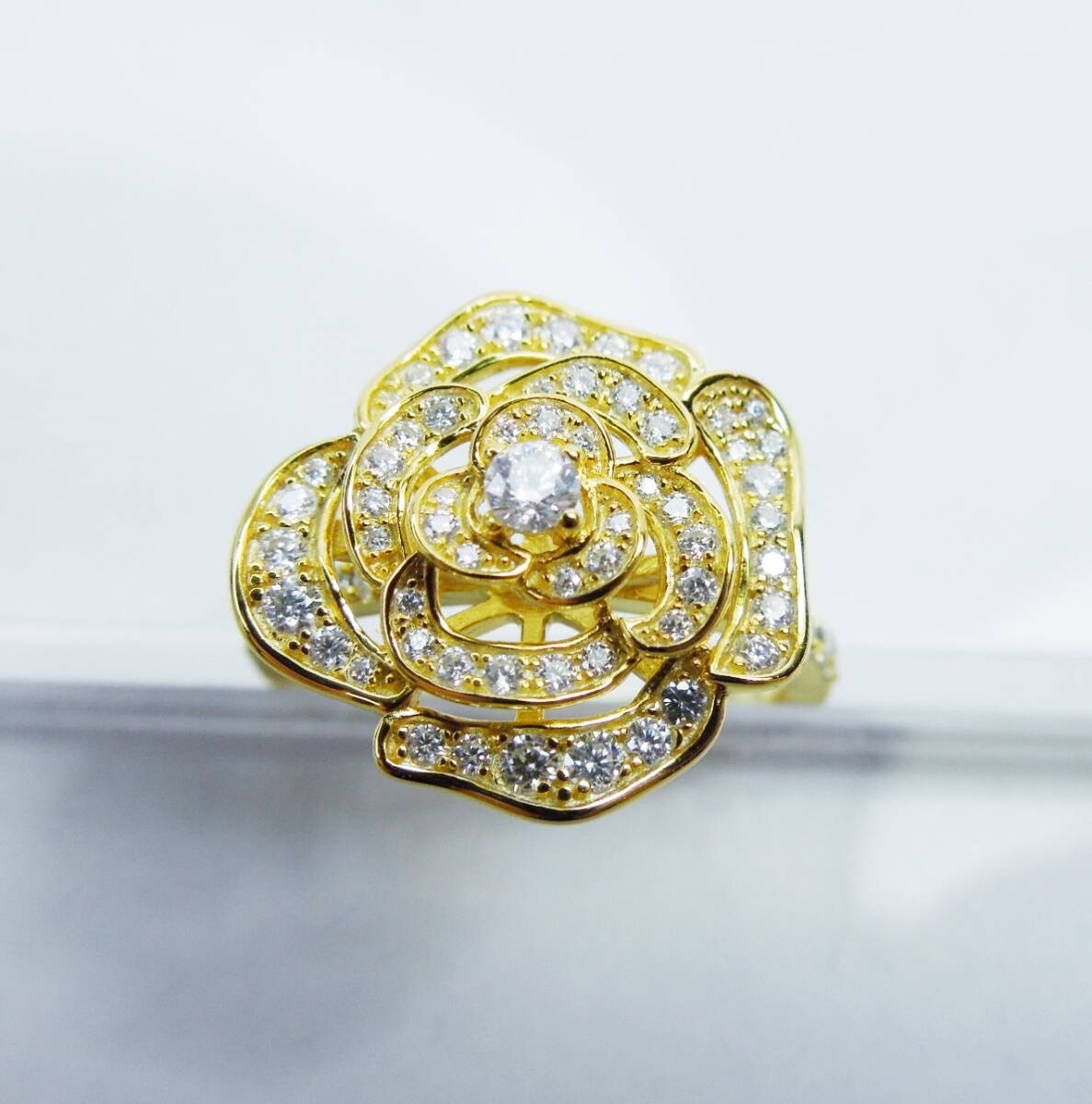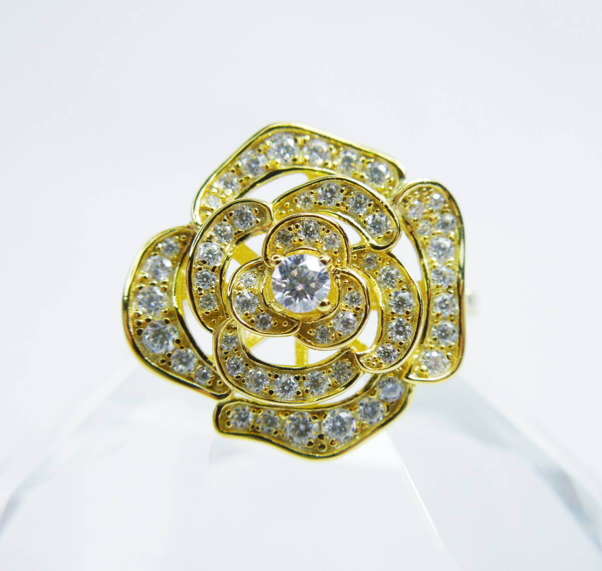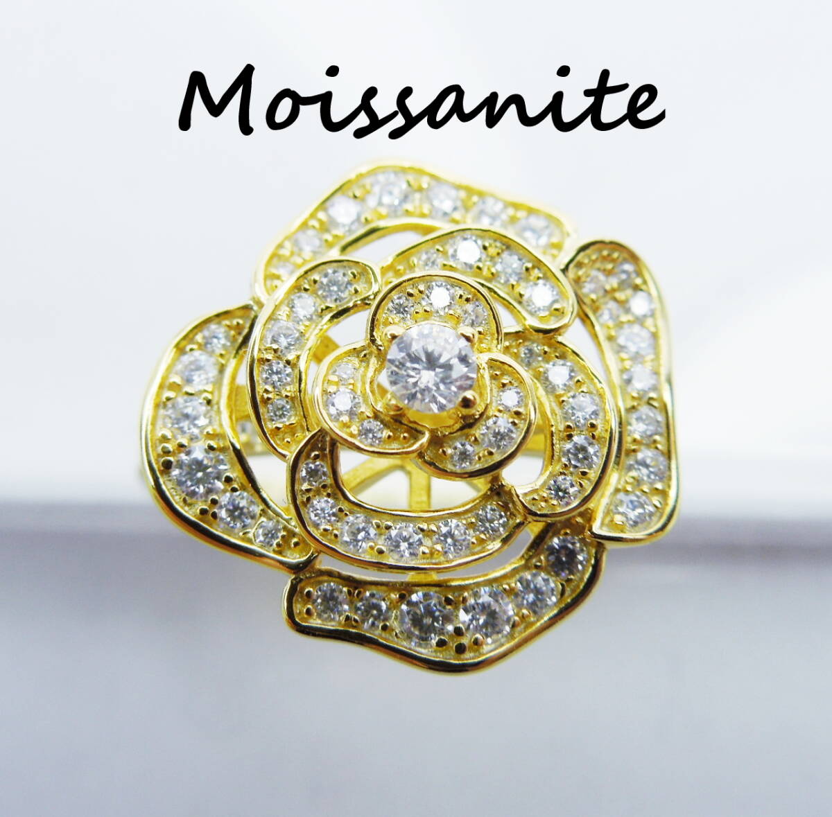 約13号強 D モアサナイト ゴールド ローズリング 合計1.5ctw 指輪 薔薇 フラワー 大きめ 大ぶり silver925 K18GP バラ 立体 約13.25号