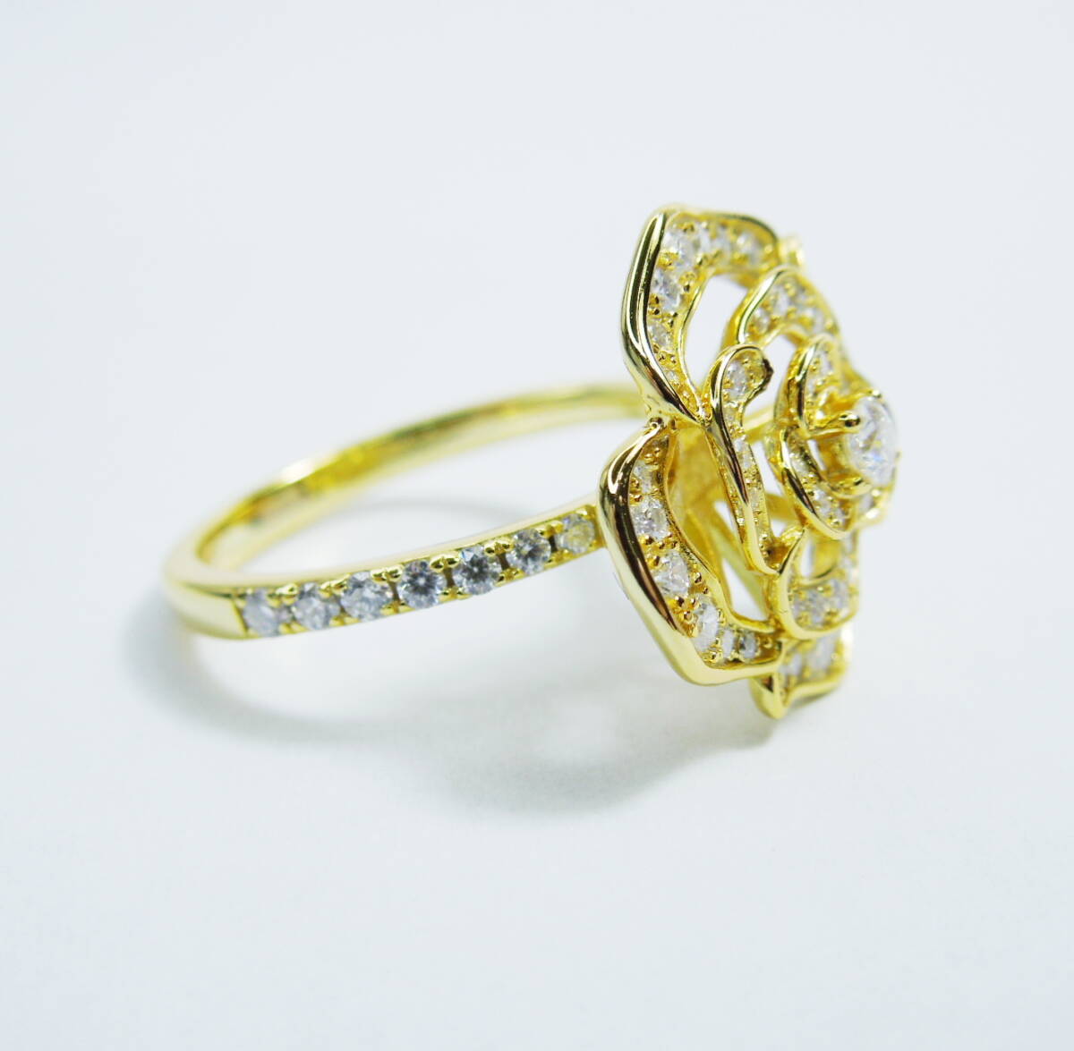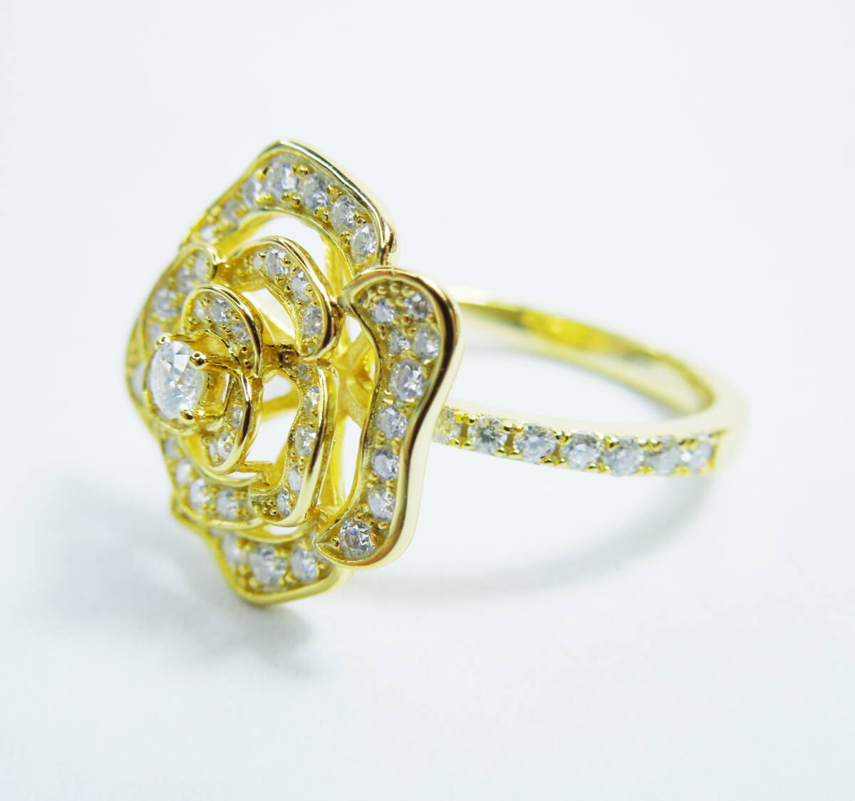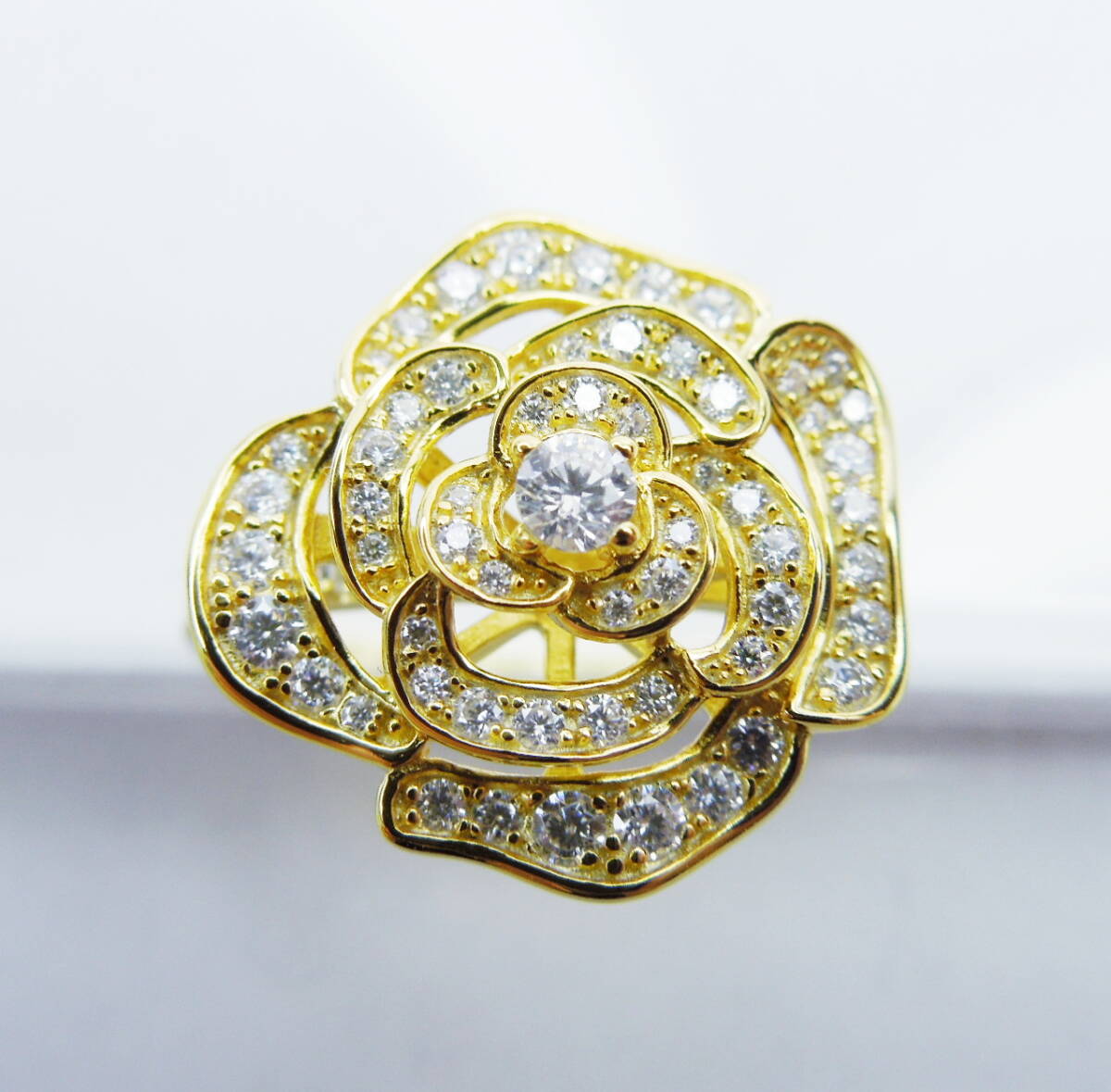 約13号強 D モアサナイト ゴールド ローズリング 合計1.5ctw 指輪 薔薇 フラワー 大きめ 大ぶり silver925 K18GP バラ 立体 約13.25号