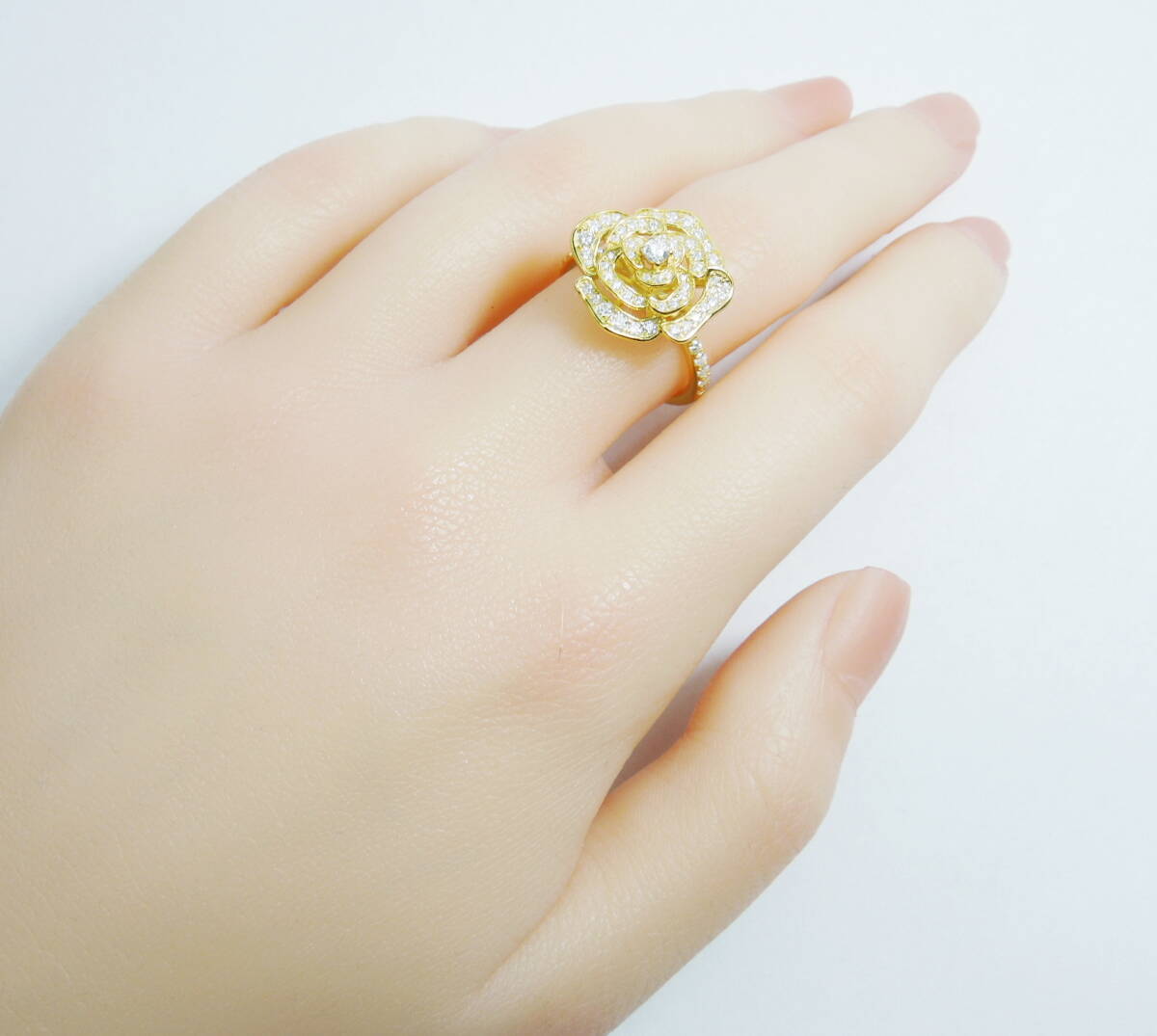 可憐なデザインで装着すると手に薔薇が咲き、見ているだけでも癒される素敵なリングです。