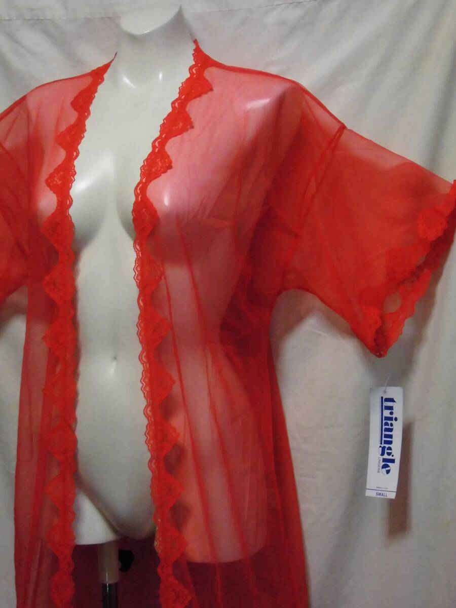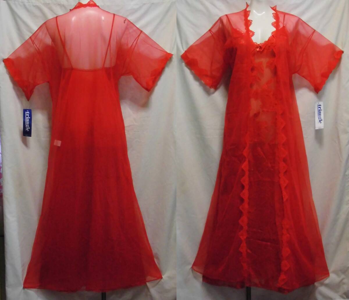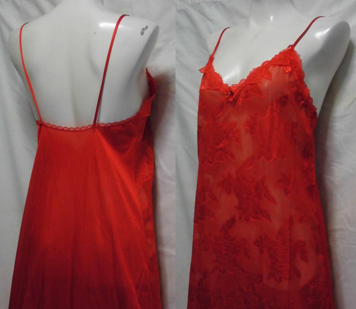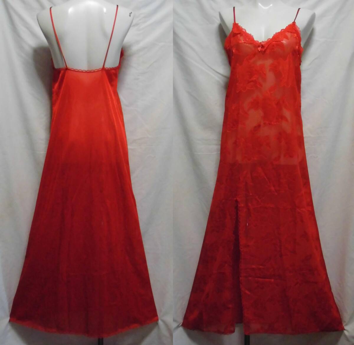 【新品未使用】ネグリジェ~ロング丈ガウン&ロング丈 [Made in USA/NYLON100%](サイズ:USAのSmall[身幅:45cm×着丈:約135cm]/赤[Red]色)