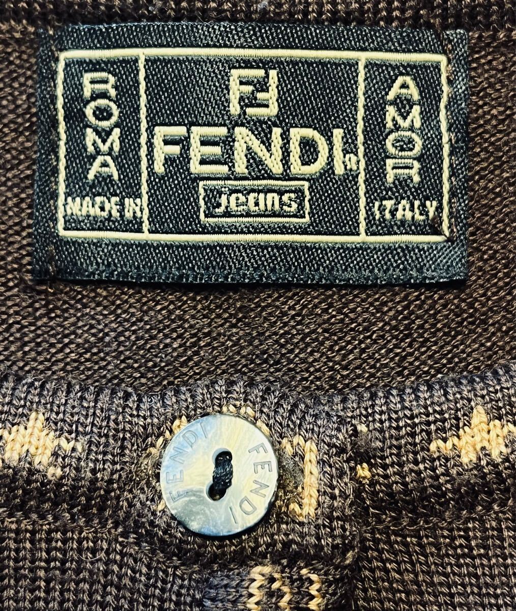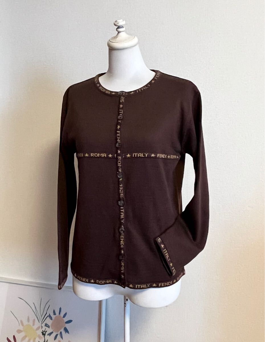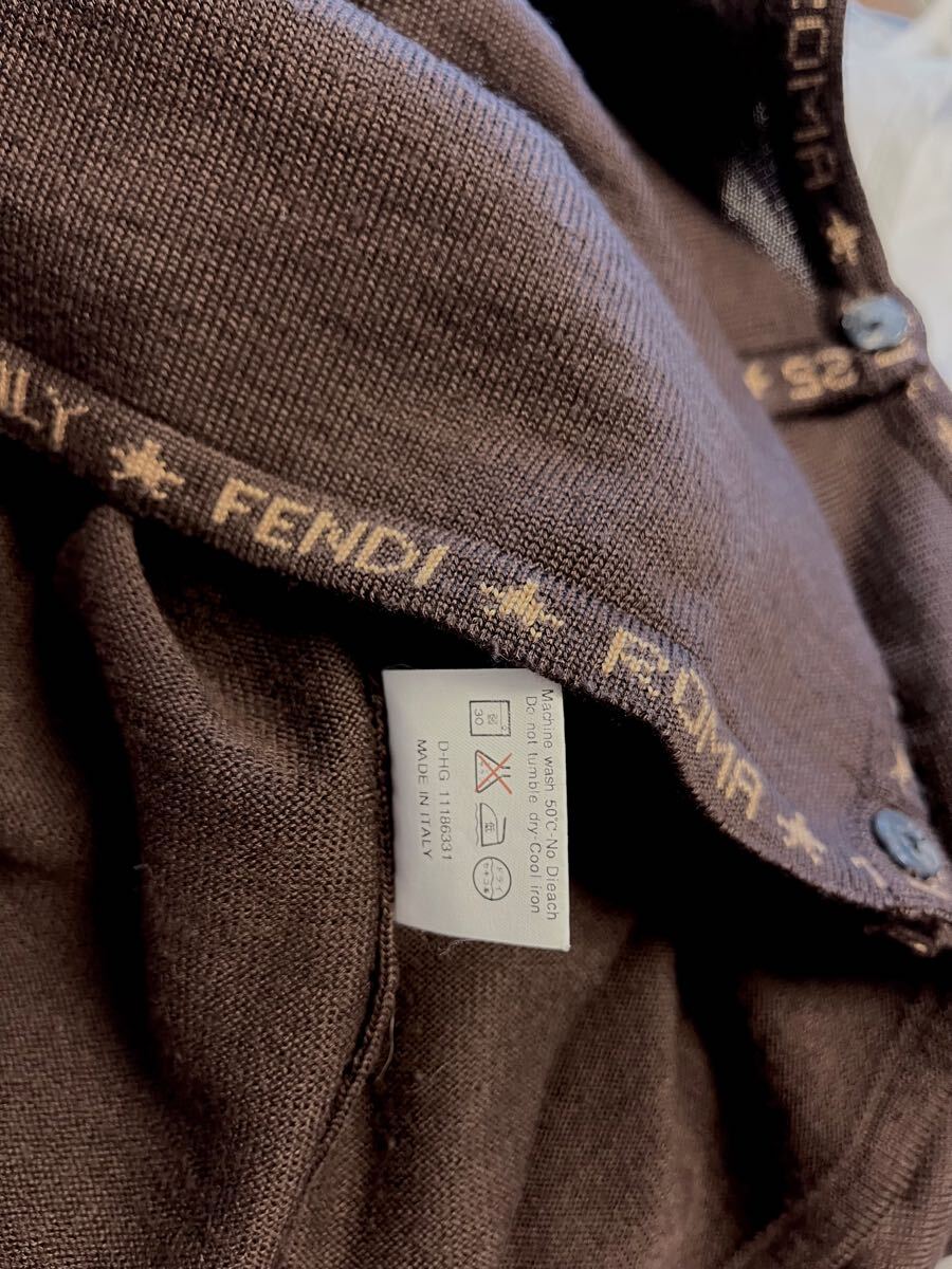 ・コーヒー色の、落ち着いたお色目に、FENDIの文字でデザインされています。