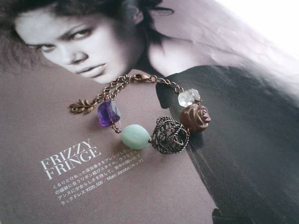 秋色を集めて・・シリーズです♪モードな秋をまとって!デザイン違いのキュートなブレスレット2本セットです♪♪いろいろな組み合わせで楽しんでいただけます♪お花のデザインチェーンには8ミリのキューブのロードナイトを合わせました♪シックで可憐な表情です♪長さは全長22センチ位で調節自由です♪神秘的なアメジストのタンブルカットや薔薇の15ミリ位のジャスパーやダイヤカットの水晶や15ミリのデザインカットのアマゾナイトはワイヤーボールやデザインチェーンを合わせてひっそりロマンチックなブレスレットです♪長さは全長23センチ位で調節自由です♪シンプルで飽きのこないいつまでも着けられるデザインを考えて作りました!それぞれ単品やお揃いのネックレスや同じテーマの作品も出品しています♪ハンドメイドをご理解頂いてノークレーム、ノーリターンでお願いします