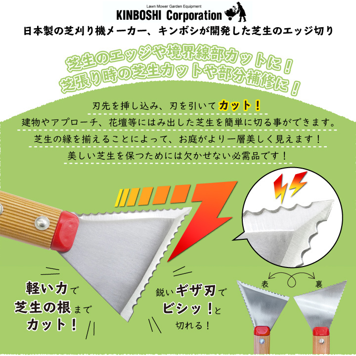 キンボシ GS芝生のエッジ切り ギザ刃 2面刃 4008 ターフカッター 根切り 芝生メンテンナス 日本製