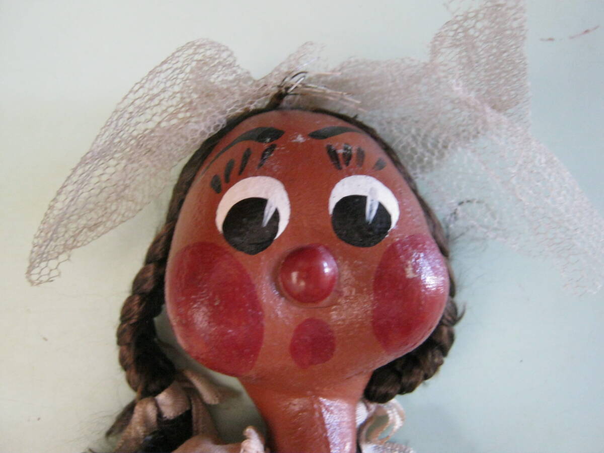【頭にレースを付け髪を三つ編みにした白いドレスを着た人形(メキシコ製)】
