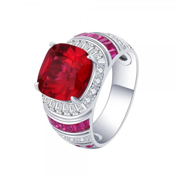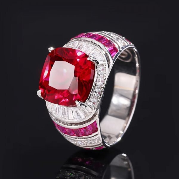 女性用スターリングシルバー925リング、ルビー