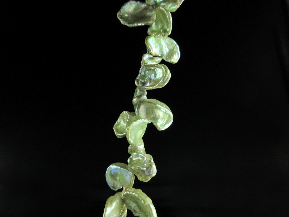 淡水真珠 デザイン ロングネックレス 83.5cm グリーン ゴールドカラー金具 J08