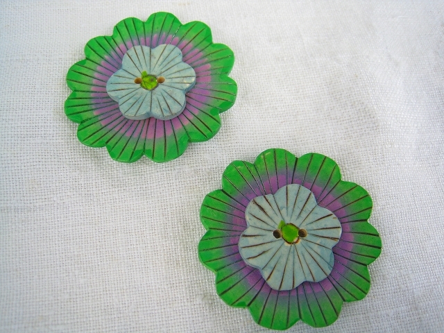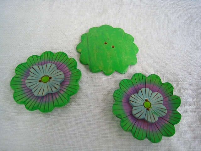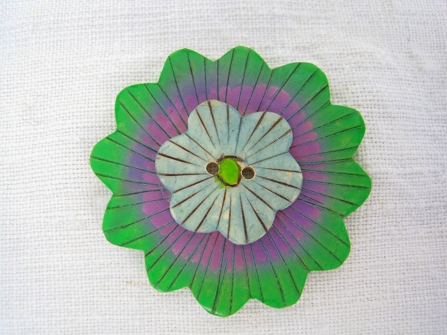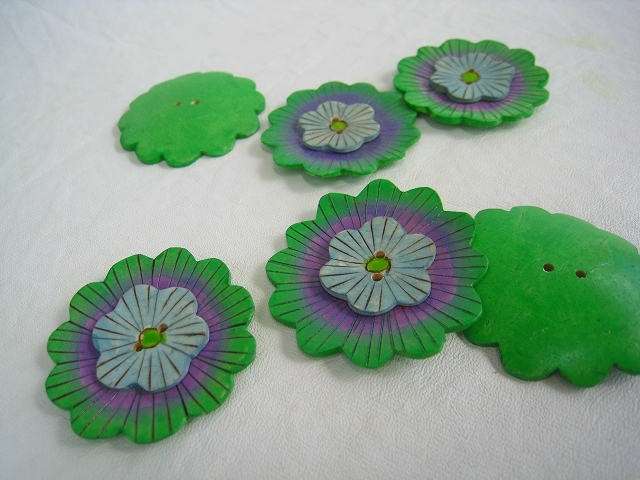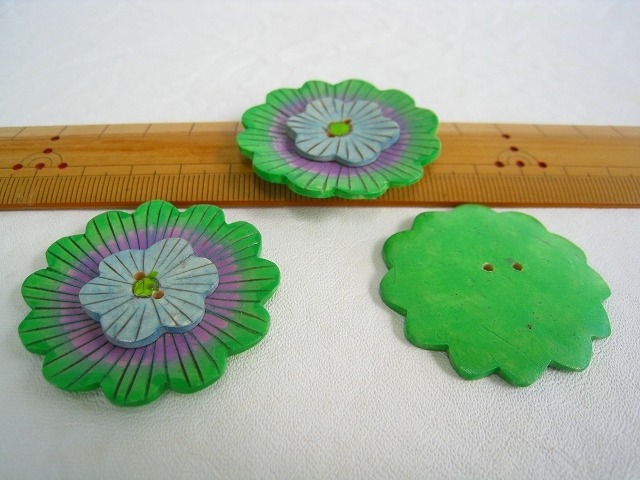 ドイツ 木製ボタン 2穴ボタン 38ミリ フラワー