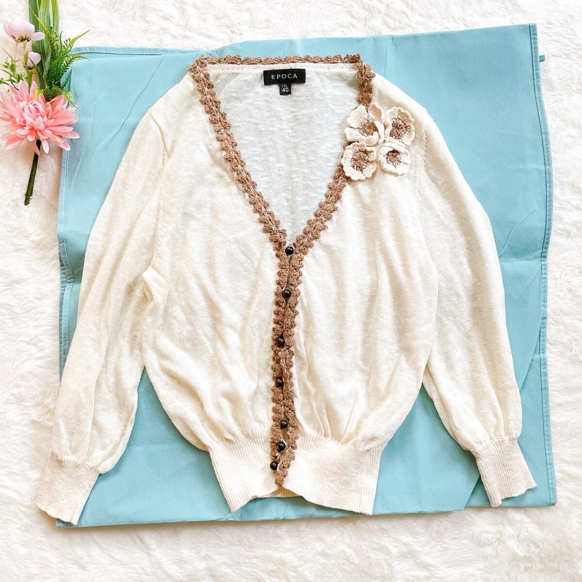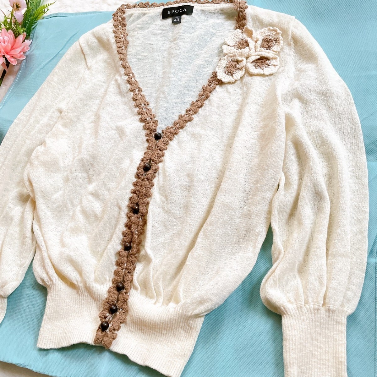 EPOCA コットンニットカーディガン 刺繍