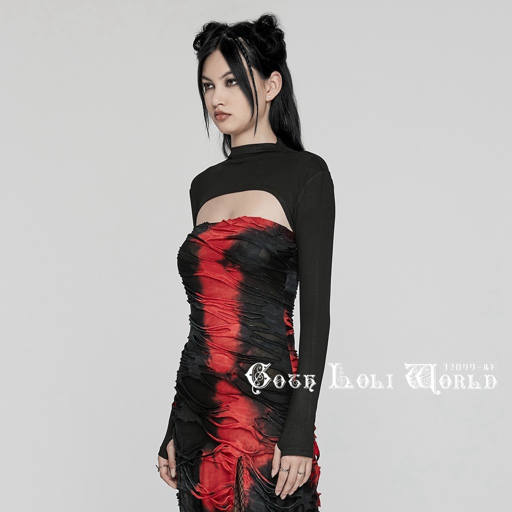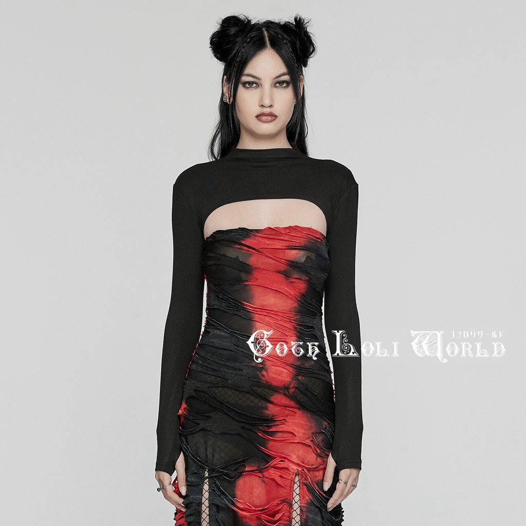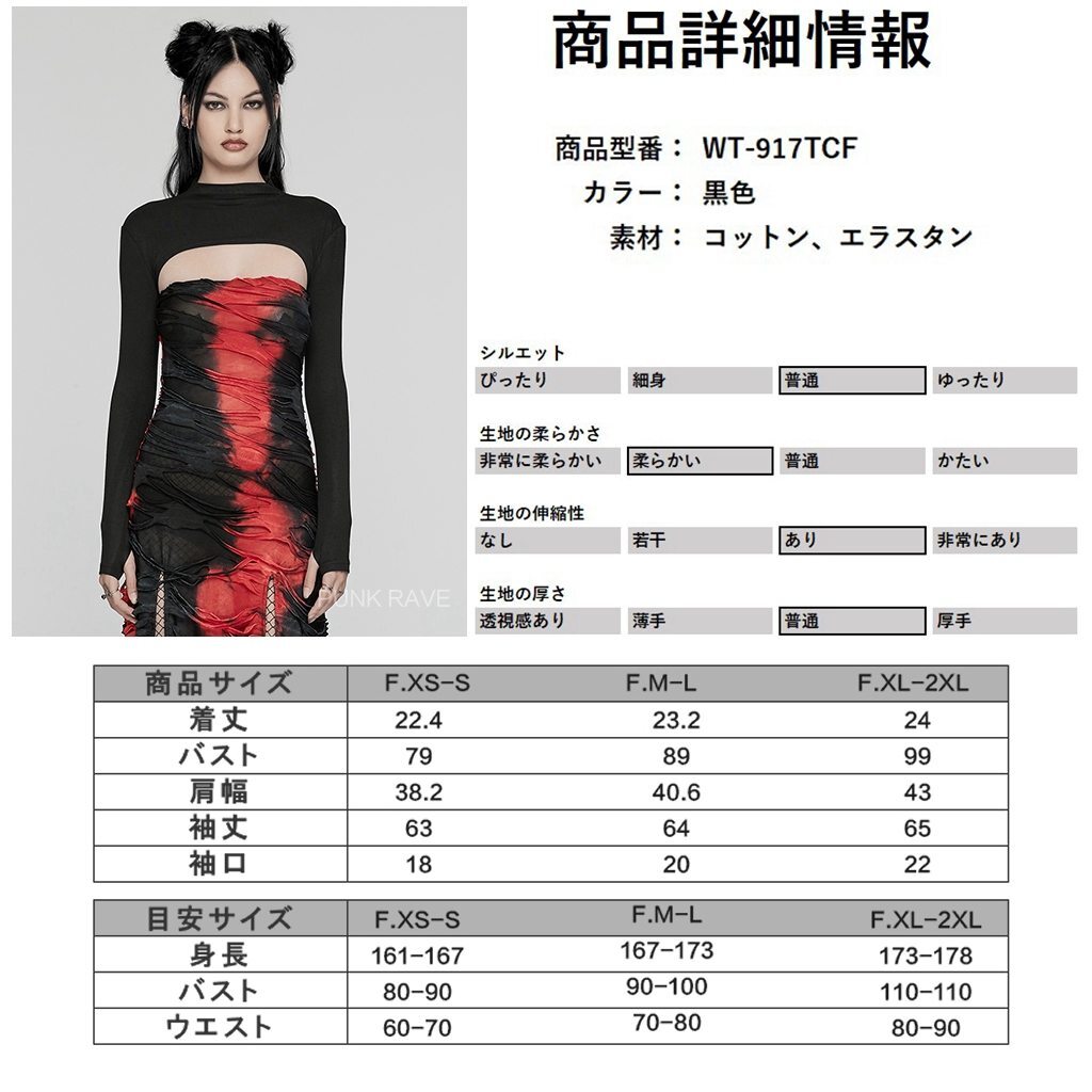 WT-917TCF-BK-XS-S モックネッククロップトップフィンガーホール カットソー ゴスロリワールド ゴシック パンク ロック ビジュアル系 V系