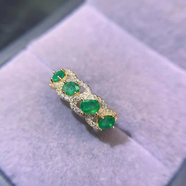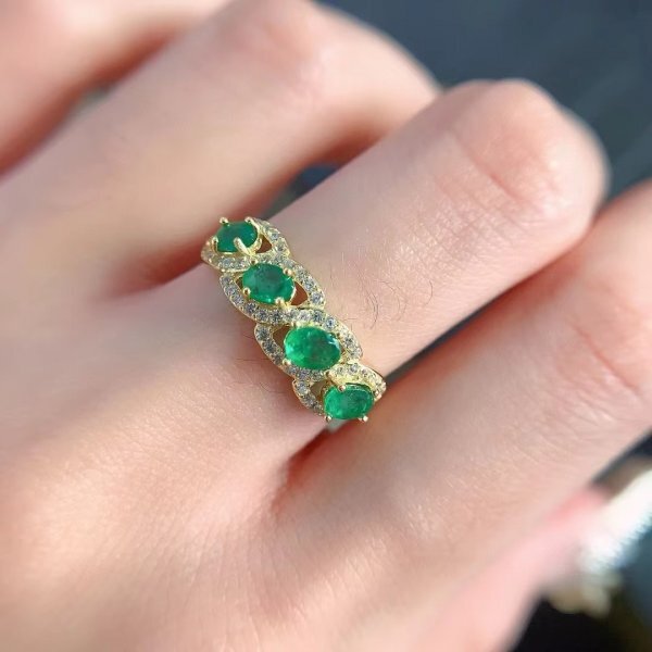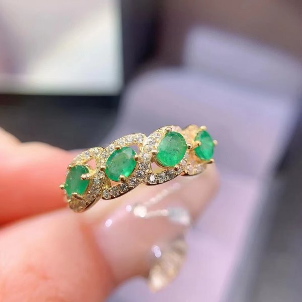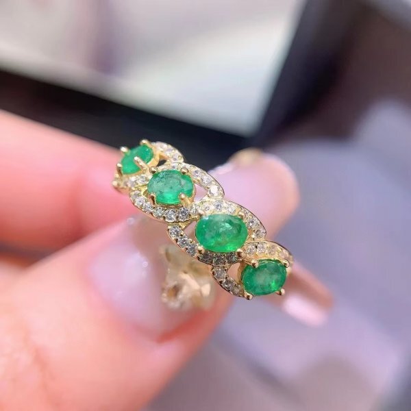 《証明書付き》女性用天然エメラルドリング、925シルバー、3層18k金メッキ、オフィスジュエリー,3x4mm