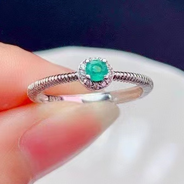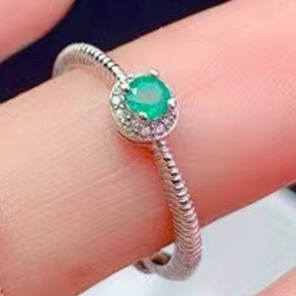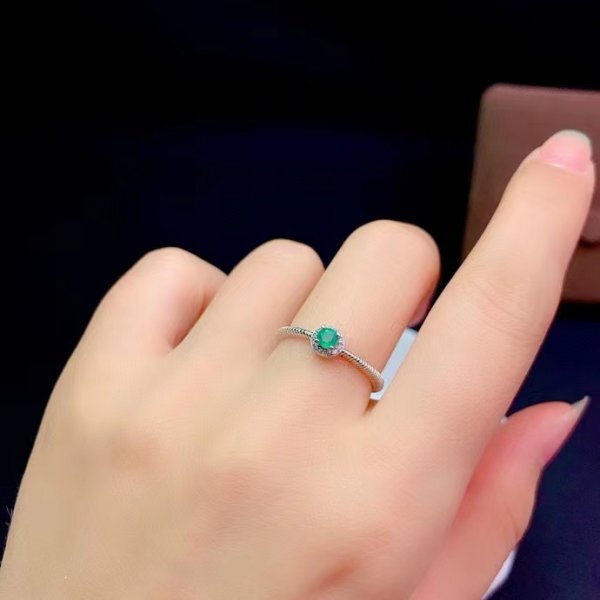 《証明書付き》エメラルドの100%ナチュラルリング、3mm、シルバー925、日常着