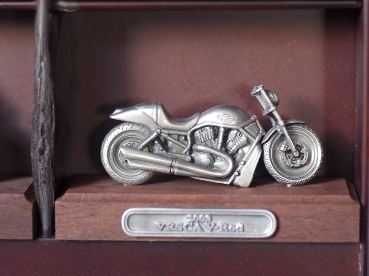 の6台です。2003年に2003個限定に作られた希少なアイテムでナンバリングがあります。VRSC V-Rodにダメージがあります。木棚にもダメージあります。経年の保管でダメージがありますが日本ではほぼ見かけない希少なアイテムです。現状でのお渡しです。状態などは写真をご確認ください。メンテナンスはご自身でお願い致します。セカンドハンド品につき、傷・汚れなど有る場合がございます。よろしくおねがい致します。