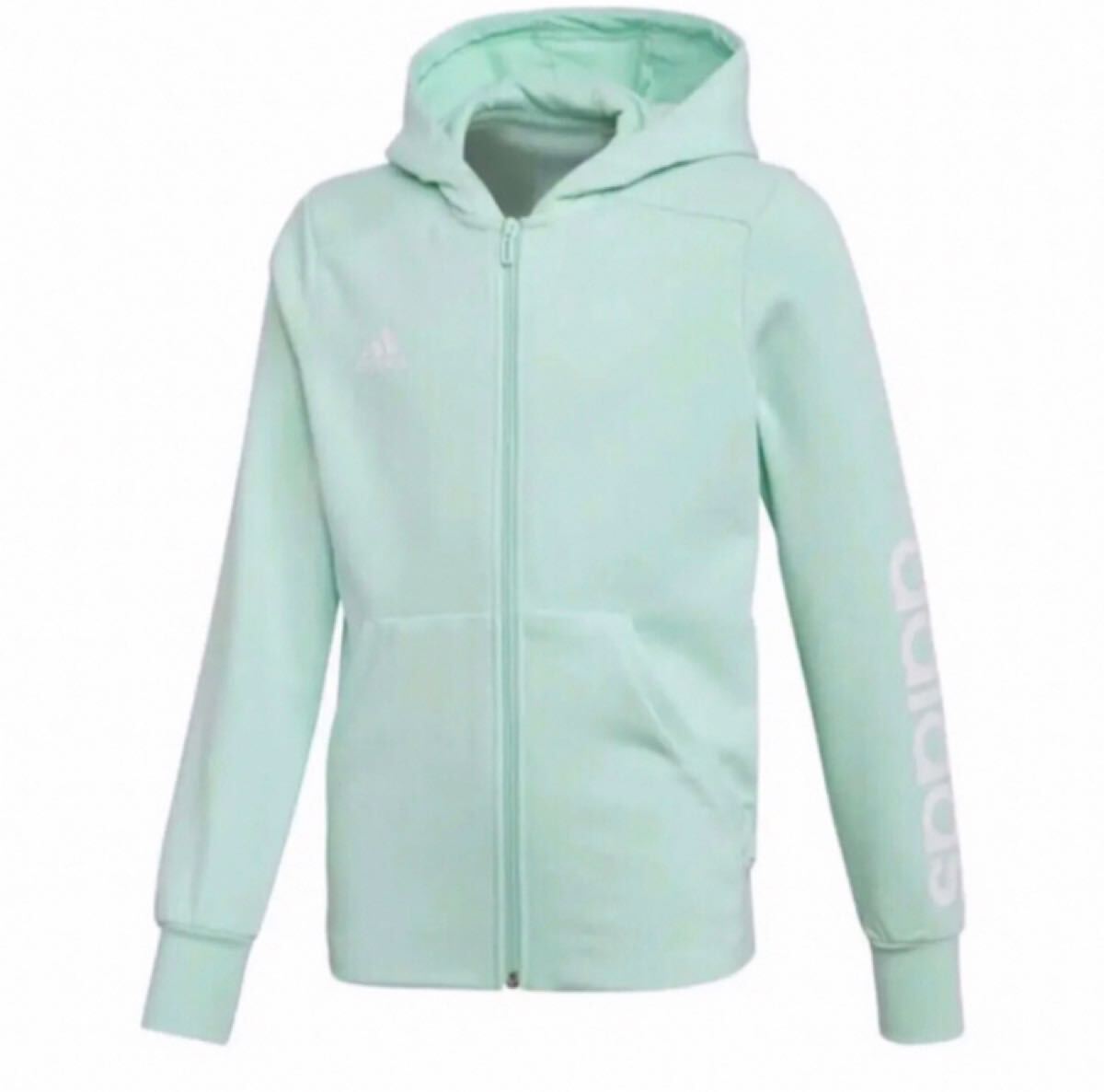 やわらかなフリース[裏起毛]混紡素材を用い、スリムフィットで快適な着心地に仕上げたガールズ向けフーディ。フルジップのシルエットに、ライニング付きのフードとカンガルーポケットを備え、身体を暖かく保つ作りになっている。左袖にあしらったアディダスのリニアロゴがアクセント。
