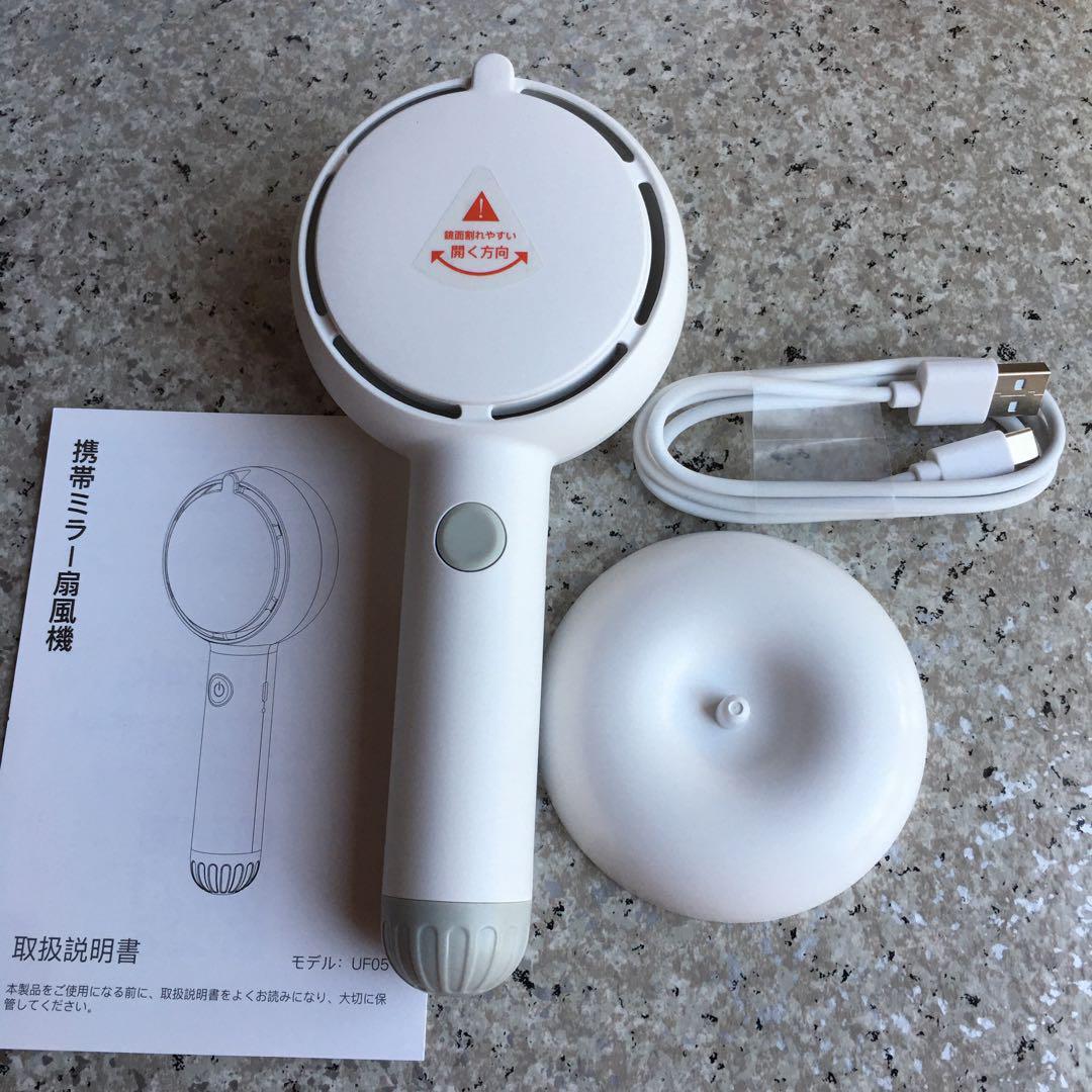化粧鏡付き。ボタンを押すと、強風・中風・弱風の3階段の風量を送ります。熱中 症、発熱、あるいは日焼けしている場合はこの扇風機を使いながら体の温度を下げることができます。カバーを回転したら、鏡はメイク全体を見るのに便利で、女の子が外出するのは必需品です。 #lashop