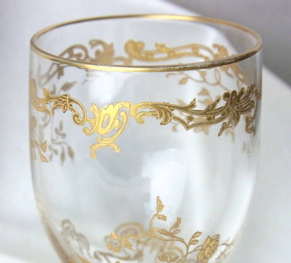稀少 OLD BACCARAT オールドバカラ Louis XV ルイ15世 金彩 グラス ロカイユ文様 優美なエッチング 高 9.5CM 上質クリスタル アンティーク