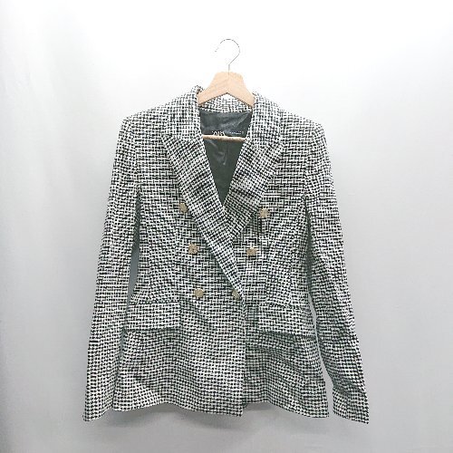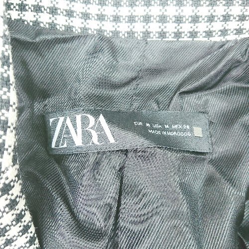 ◇ ⊇ ZARA ギンガムチェック柄 ダブルボタン 肩パット入り 長袖 ジャケット サイズM ブラック ホワイト レディース E