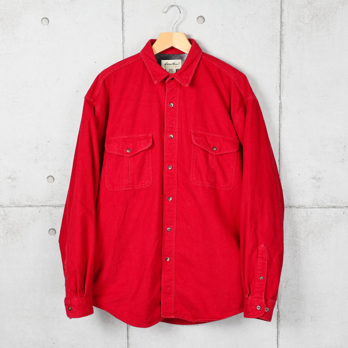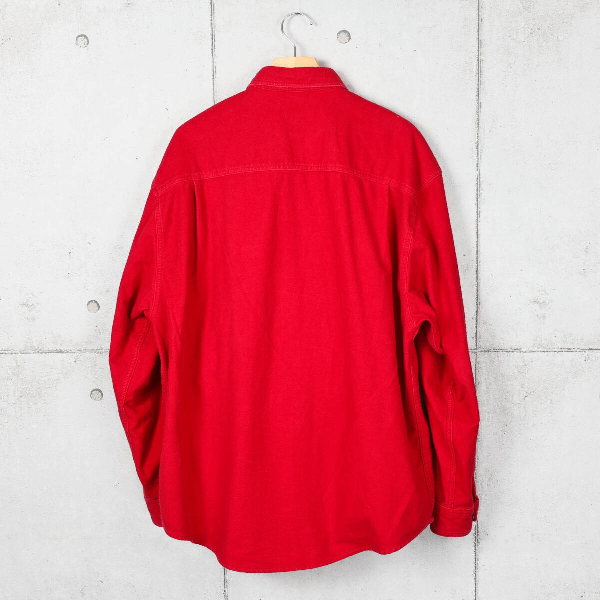 【ブランド】 Eddie Bauer / エディーバウアー 【アイテム】 シャモアクロス ワークシャツ 【商品説明】 アメリカで購入しました、エディーバウアーのシャモアクロス素材が使用されたワークシャツになります。 【カラー】 バーガンディ 【コンディション】 使用に伴う色落ちや擦れなどがあります。 【サイズ】 サイズ:XL 身幅:66cm 肩幅:59cm 着丈:83cm 袖丈:64cm | |||