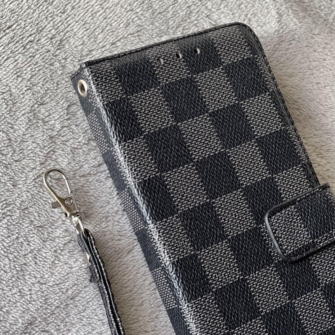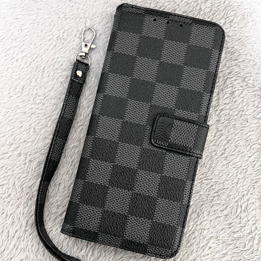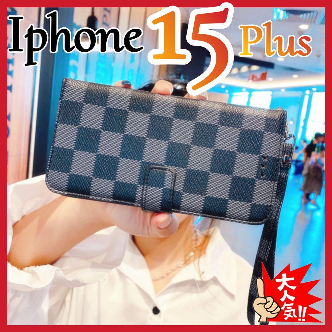 大人気 iPhone15Plusケース手帳型 黒色 チェック柄 PUレザー 高級感 耐衝撃 アイホン15プラスカバー ブラック カード収納 おしゃれ ノーブランド アイホンケース ストラップ付き 全面保護