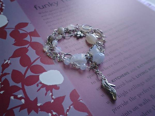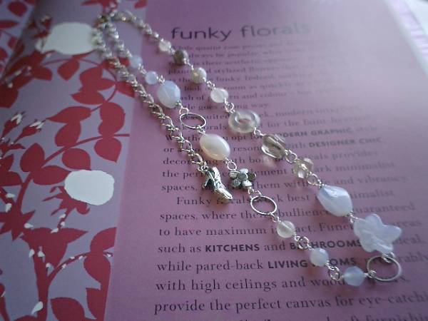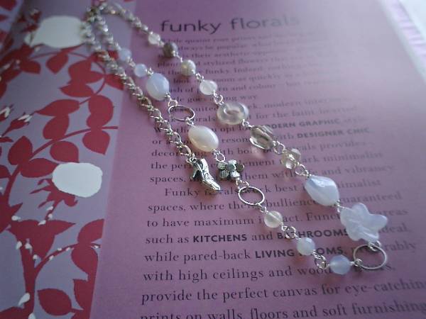 形のない夢を捉えて!シリーズです♪繊細な石を集めて可憐にまとめました♪ブルーカルセドニーは6ミリのランダムカット、15ミリのお花、11ミリ位のラフカットです。淡い色のピンクカルセドニーは12×16ミリ位のフラットオーバル、12ミリのグレーカルセドニーのリングや5×8ミリのボタンカット、12×10ミリ位のラフカットのレモン水晶、8ミリ、6ミリのコインのムーンストーンなど繊細でやさしい色の石を合わせました♪お花のチャームや表情豊かな8ミリのランダムカットのボツワナアゲートをアクセントにひっそり大人のロマンチックしています♪長さは全長60センチ位で調節自由です♪画像のようにブレスレットにしても可愛いです♪同じデザインの長さ違いや同じシリーズも出品しています♪シンプルで飽きのこないいつまでも着けられるデザインを考えて作りました!ハンドメイドをご理解頂いてノークレーム、ノーリターンでお願いします