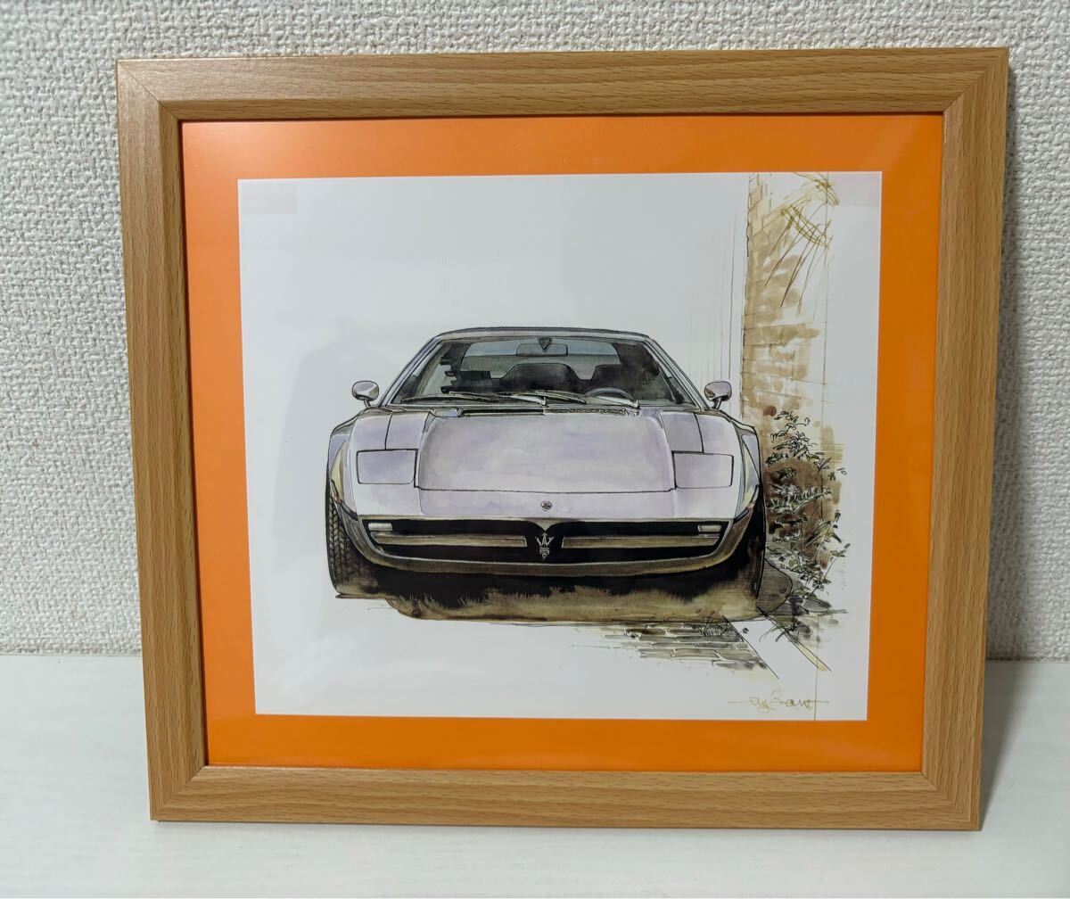 BOW 木製額 イラスト マセラティ ボーラ ? Maserati シリーズ シルバー インテリア スポーツ 旧車 クラシック 車 by Bow Collection 1020