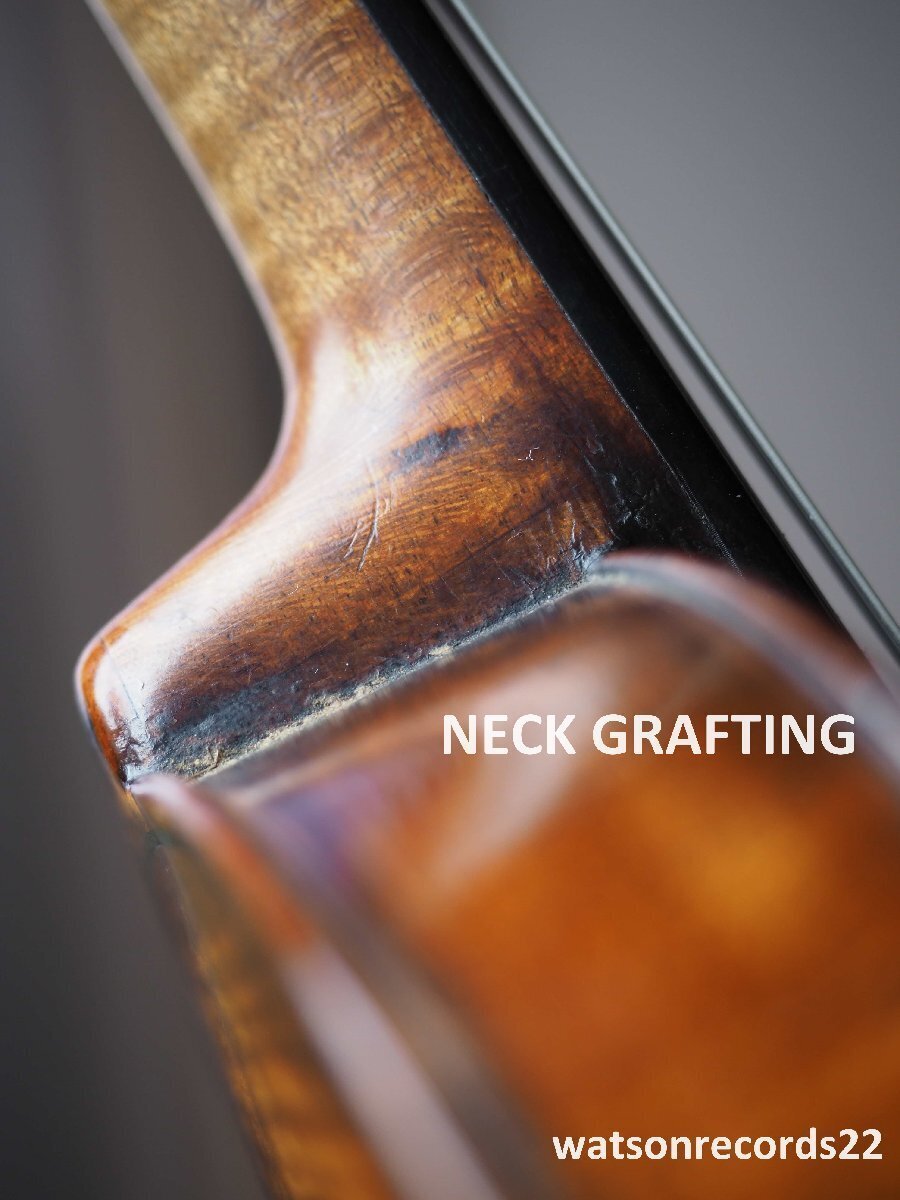 ジャン=フランソワ・アルドリックは、ルポやピケと同世代のフランス製作界の大御所の一人である。晩年、彼はルイジ・タリシオから入手したオリジナルをモデルにした見事なストラディヴァリのコピーを製作しており、私たちのヴァイオリンもその一つである。この見事なヴァイオリンを見ると、ヴュイヨームからすべてが下り坂になったことを認めざるを得ない!この見事なヴァイオリンを見ると、ヴュイヨーム以降、すべてが下り坂になったことを認めざるを得ない!前世代のパリの製作者たちは、独自の個性と特異性を保ちながら、美しく観察されたコピーを製作する目を持っていただけである。アルドリックはこの時代のあまり知られていないメーカーの一人で、ティボーと一緒にされることが多いが、彼の作品はとても美しい。正確さと柔らかさの組み合わせはストラディヴァリに非常に忠実で、アーチやモデルの細部もすべてそうである。コンディションは非常に良く、背もたれ、肋骨、スクロールにひび割れや損傷はなく、ただ顎台の下に小さなひび割れが補修されており、左のFホールの目の上にも短いひび割れが補修されている。オリジナルのニスは非常によく保存されている。