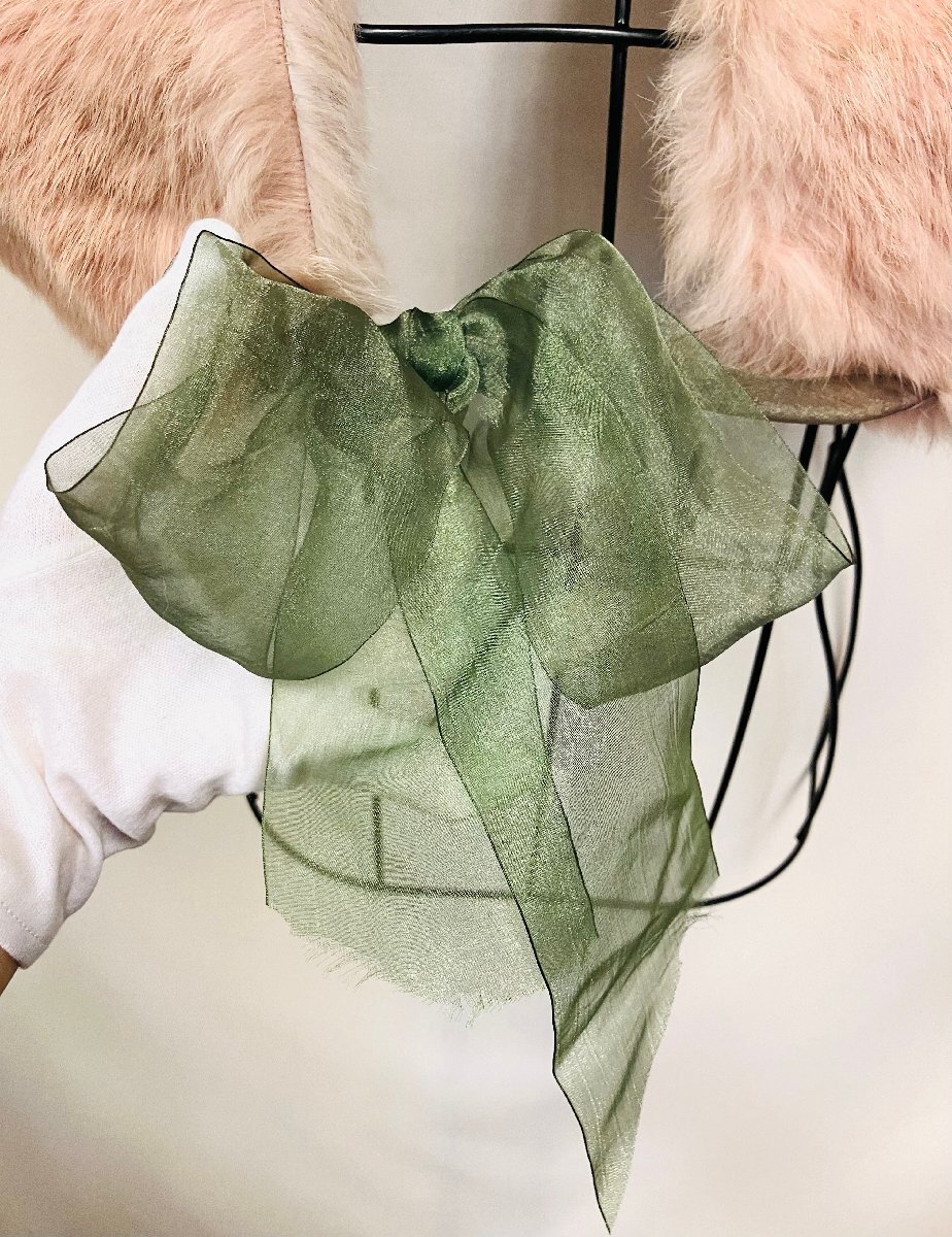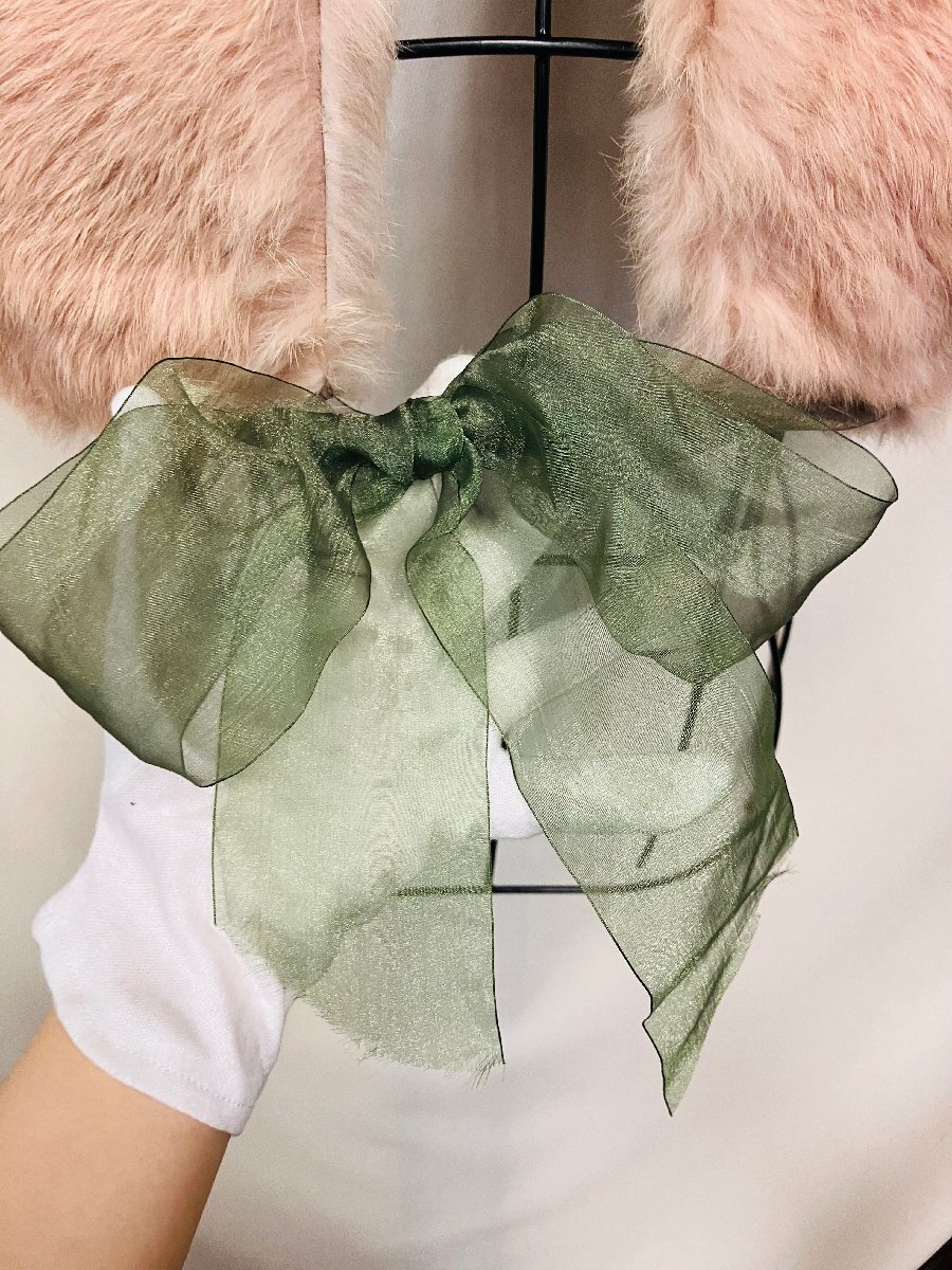 品名:qof.ZO806 KRYOS ラビット毛皮 ショール 襟巻き 24cm×96cm チュールリボン付き ピンク