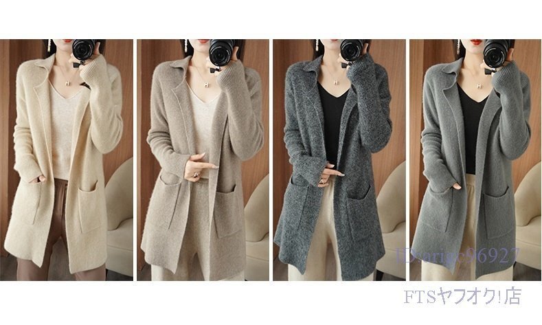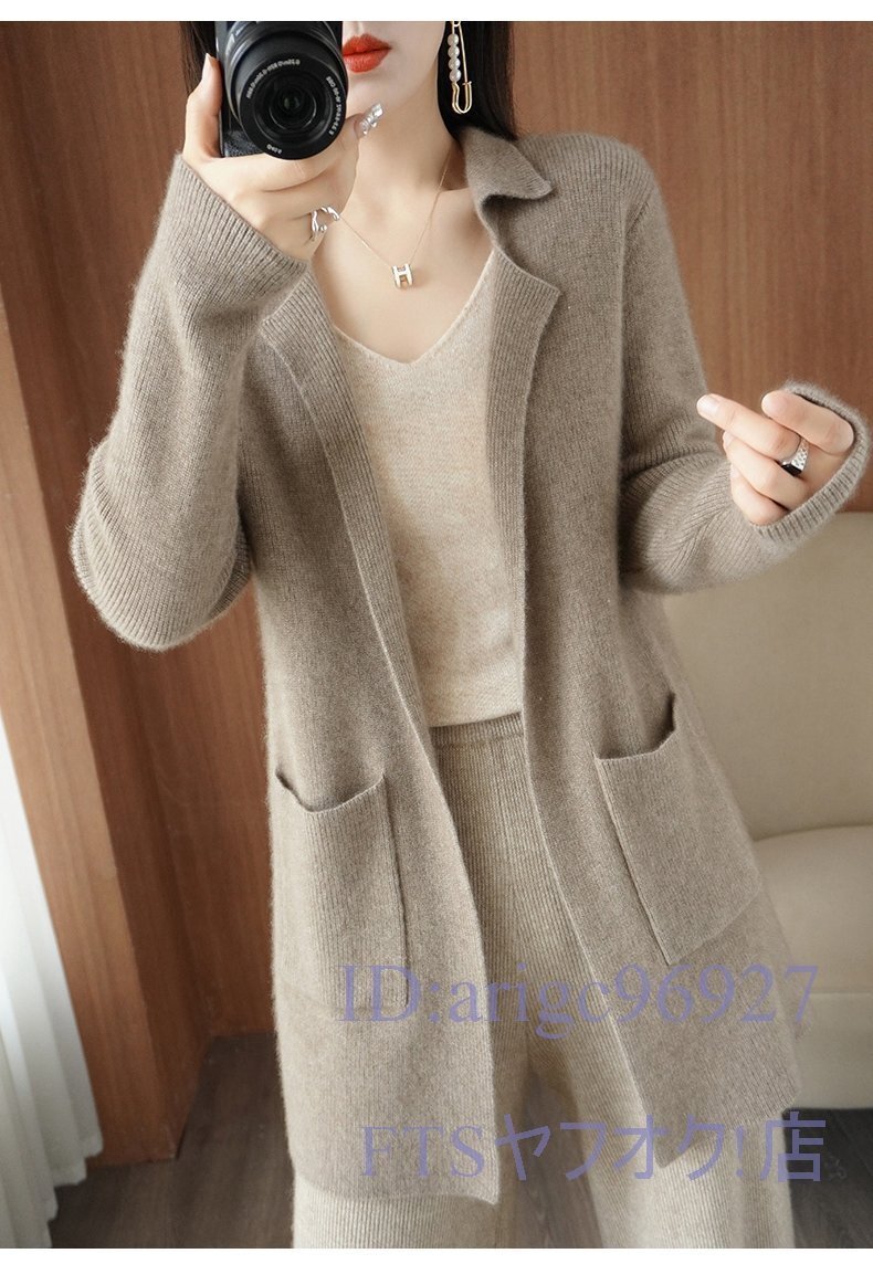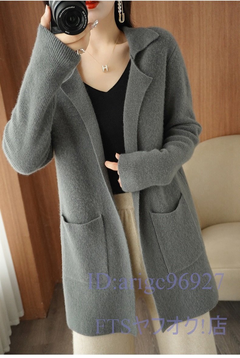 A0462☆新品M-XLサイズ 上質 襟付き カシミヤウール混 ニットセーター オシャレ 長袖 ニットカーディガン コート アウター*カーキ