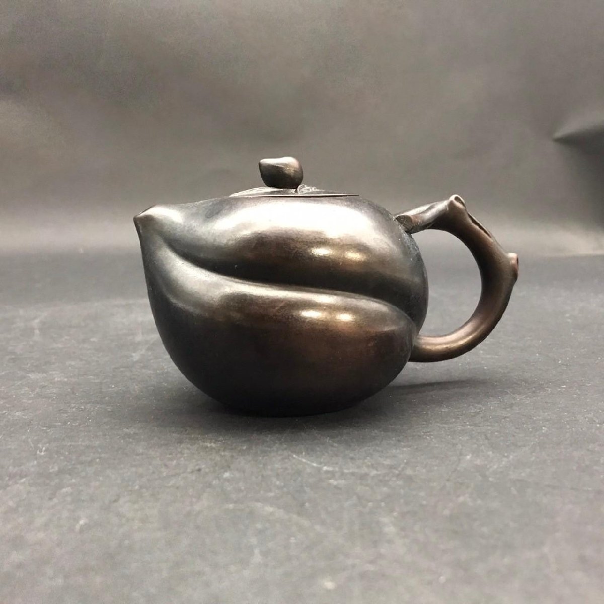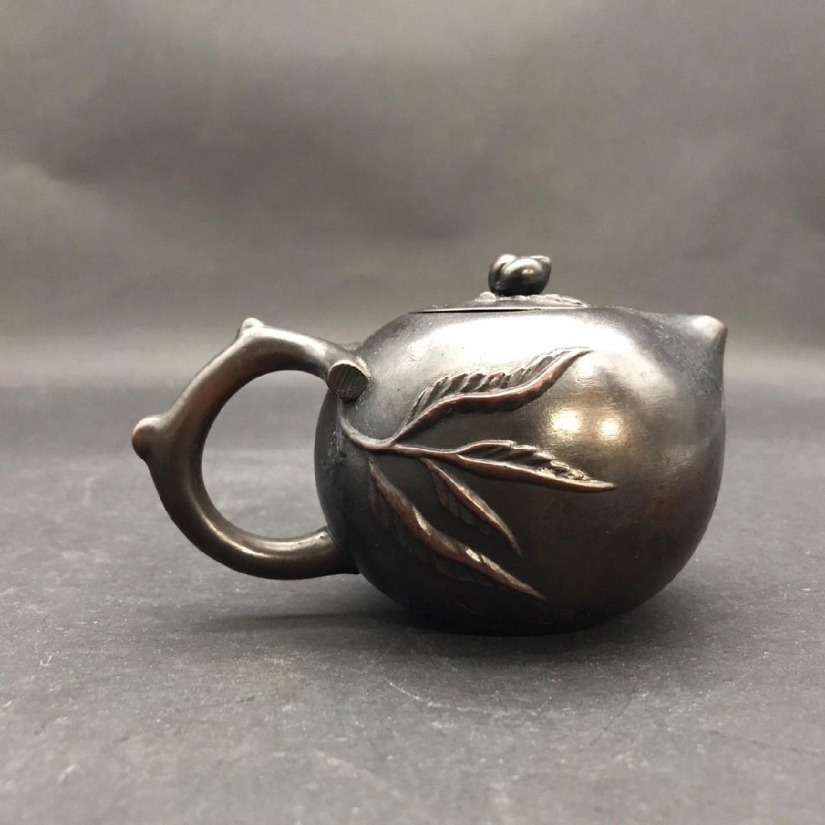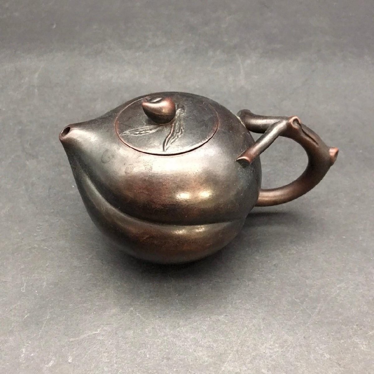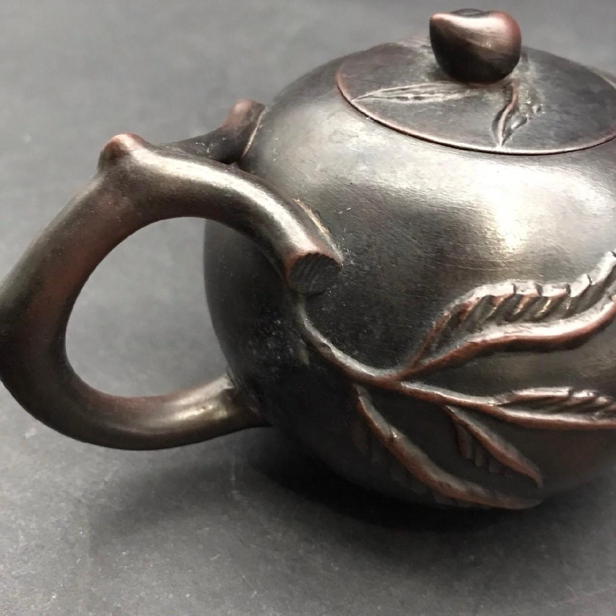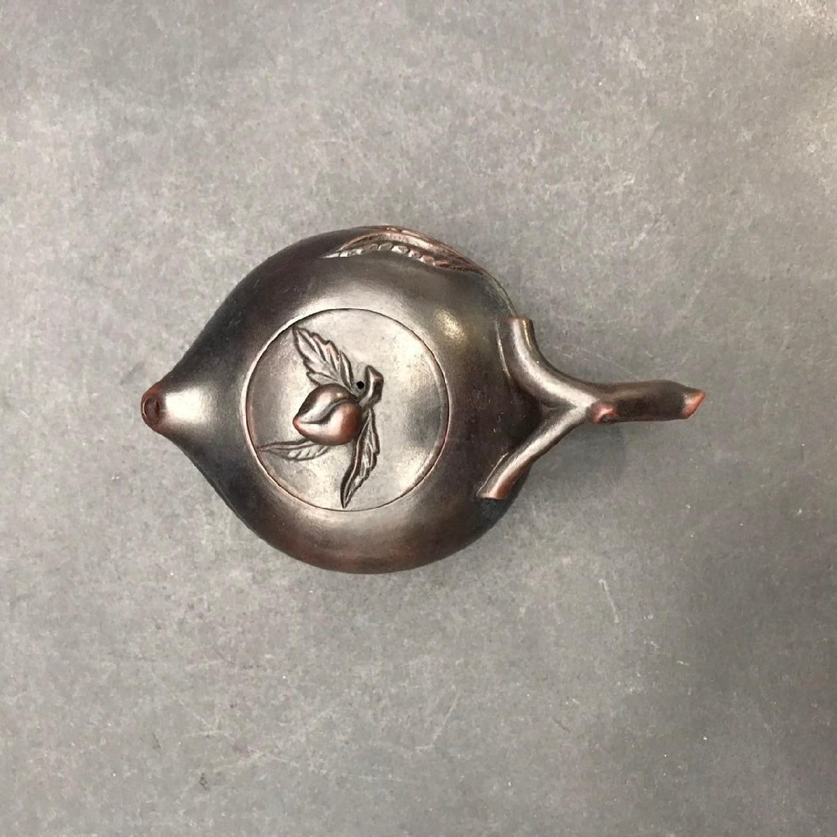 SW1007-2-5 満月圓款 朱泥 容彫果実型 茶壷 中国 茶器 急須 煎茶道具 陶器 鑑賞 コレクション H7cm 口径4.5cm 60サイズ