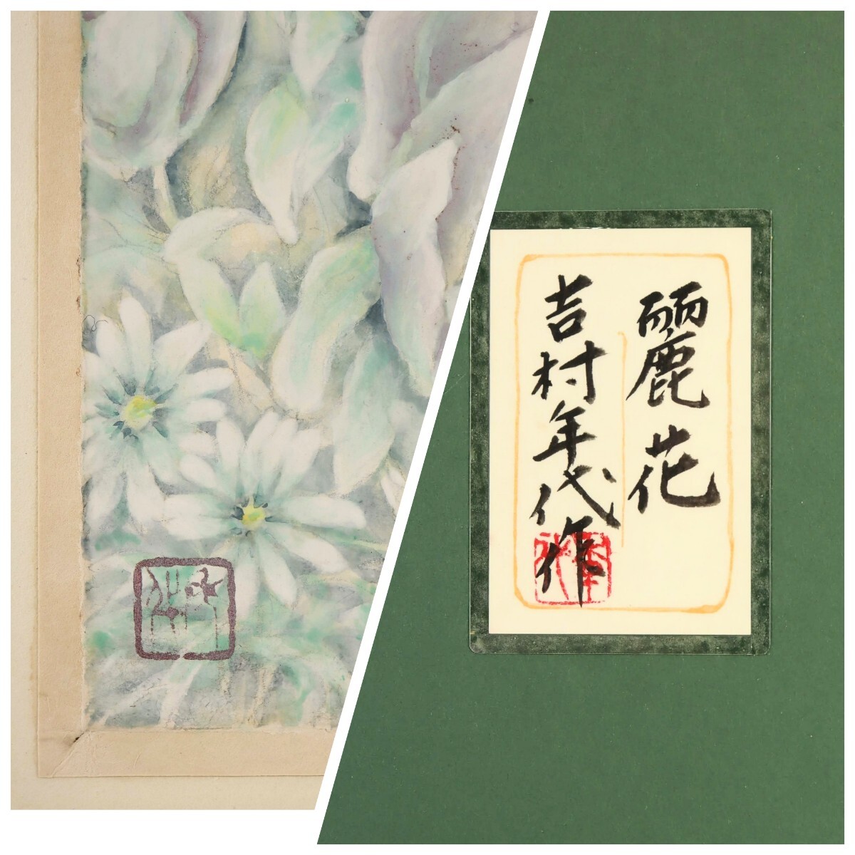 真作 吉村年代 日本画「麗花」画寸 24cm×33cm 4号 京都府出身 日展会員 日春展会員 山口華楊に師事 豊かな色使い 9839