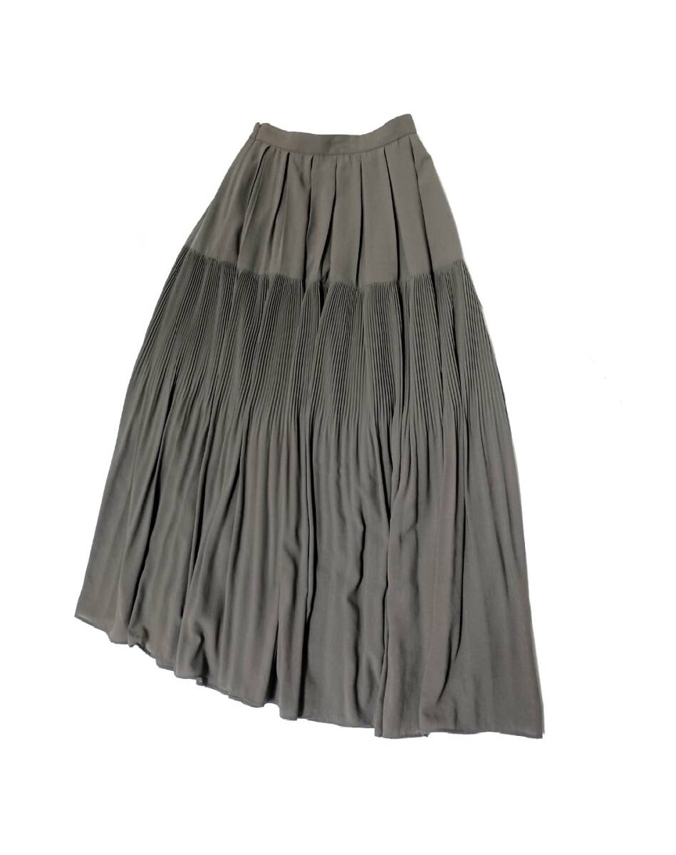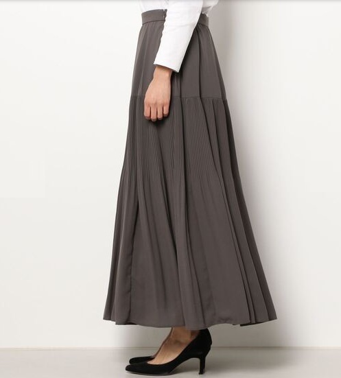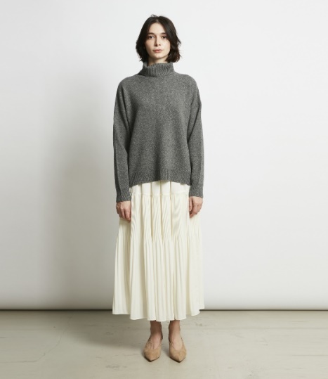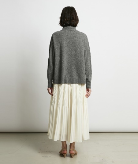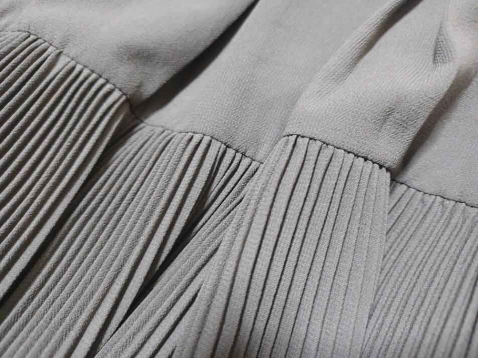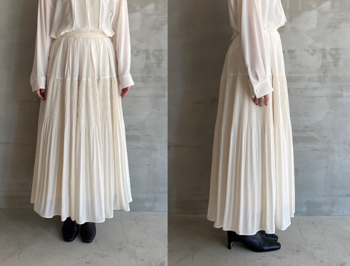 タックとプリーツとプリーツを途中で消す事によりフォルムの変化をつけています。