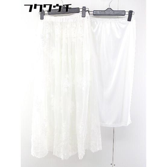 ◇ ◎ LOWRYS FARM タグ ペチコート付き レース ロング ギャザー スカート サイズF ホワイト系 レディース