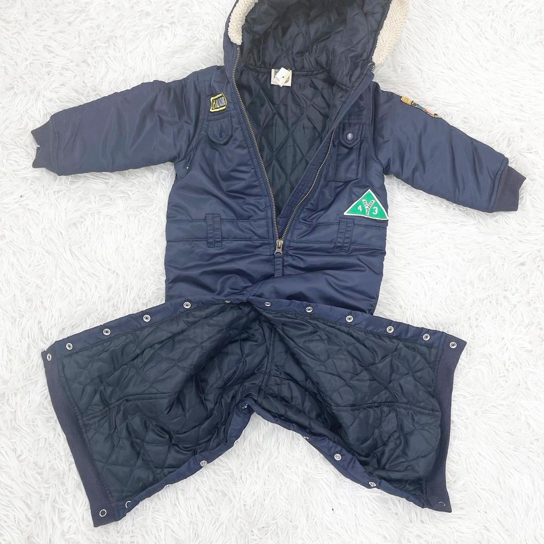 【A1353】 F.O.KIDS エフ・オー・キッズ ベビー ダウンロンパース 上下つなぎ あったか フード付き スノーコンビ ネイビー 冬用 90cm