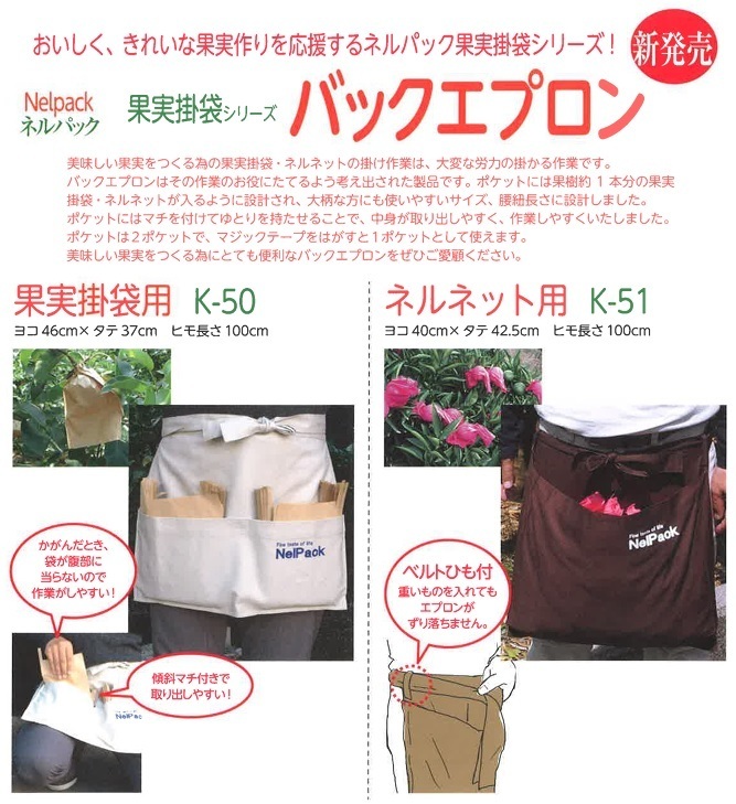 ・果実の袋掛作業を効率的に行えるように設計したエプロンです。