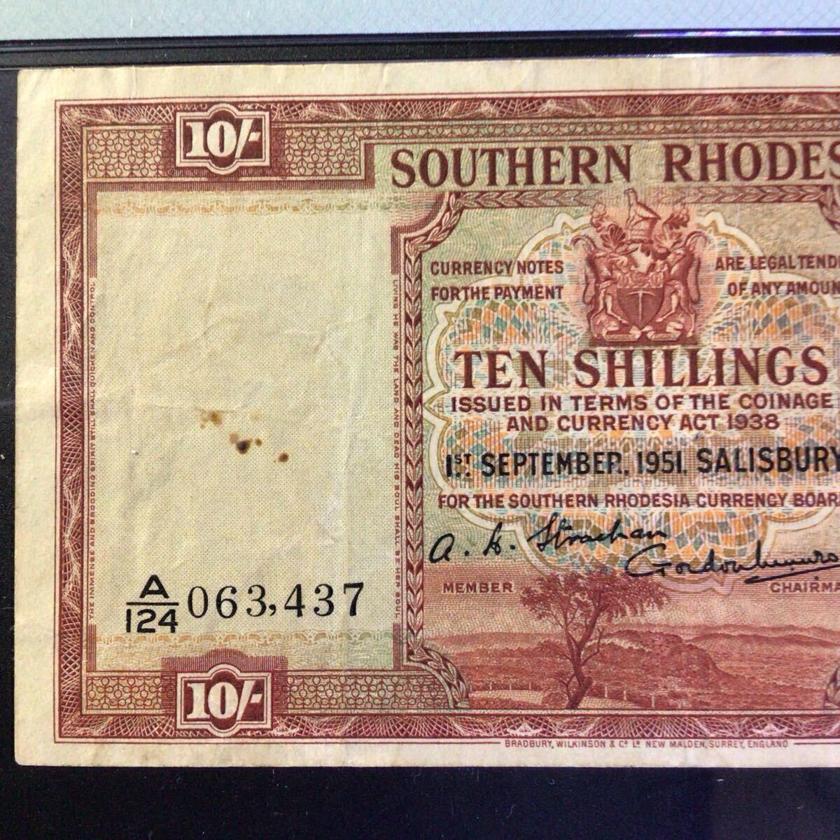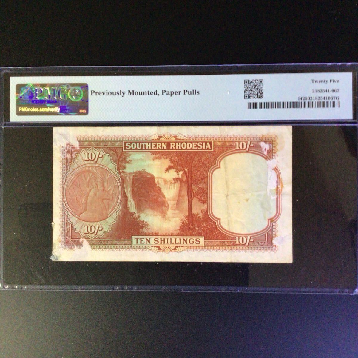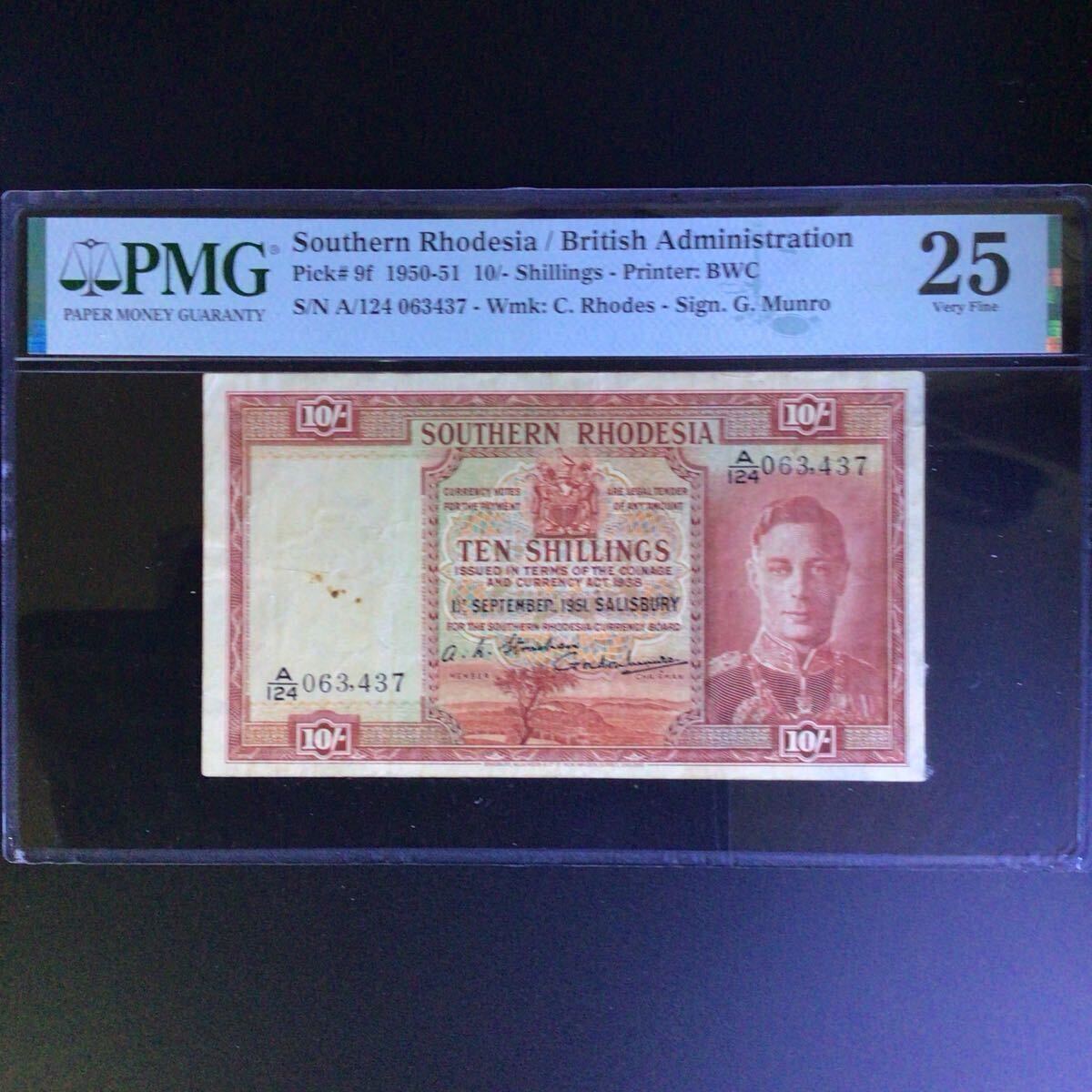 南ローデシア《イギリス統治》10シリング【1951】『PMGグレーディング鑑定 美品 25』*状態表示については、個人によって多少の違いがありますが画像にて判断し納得して頂ける方のみ入札して下さい。