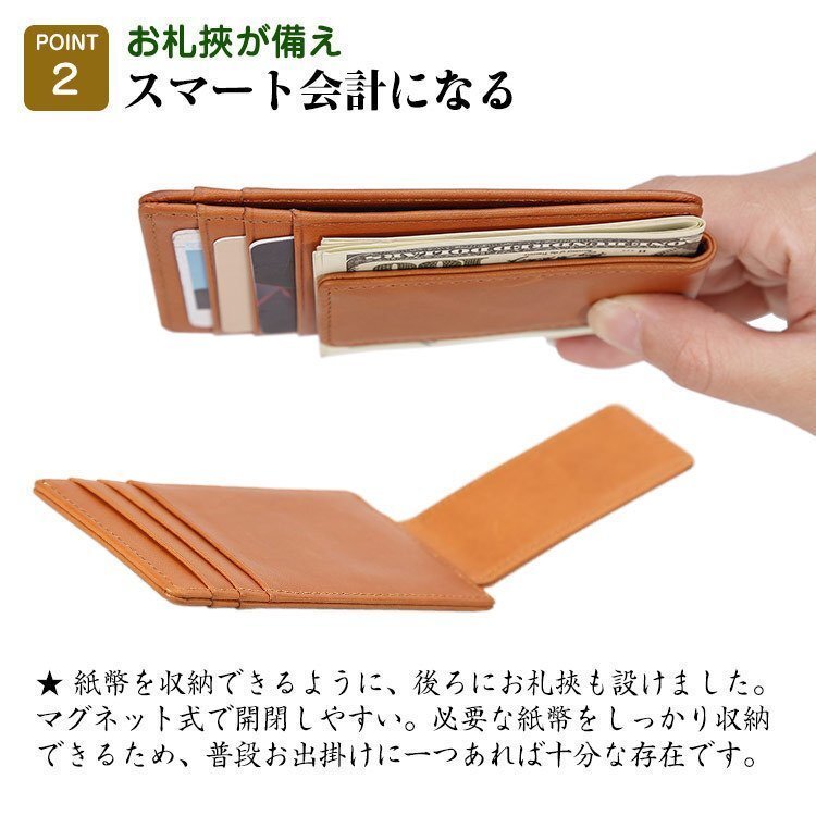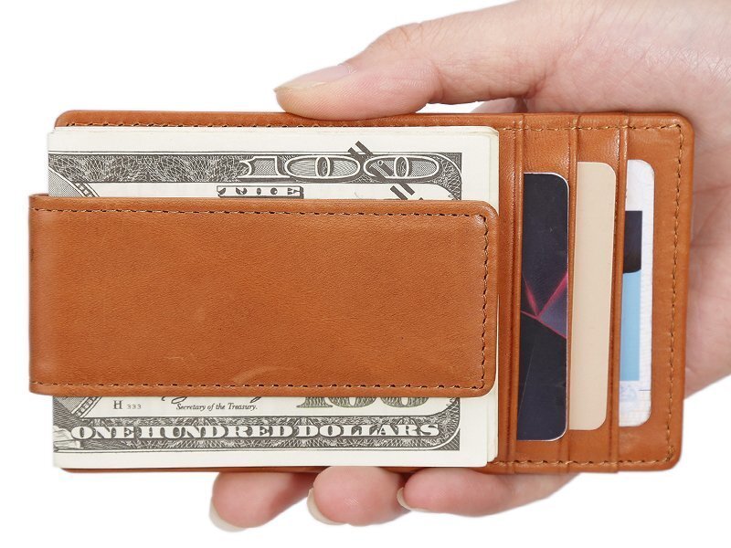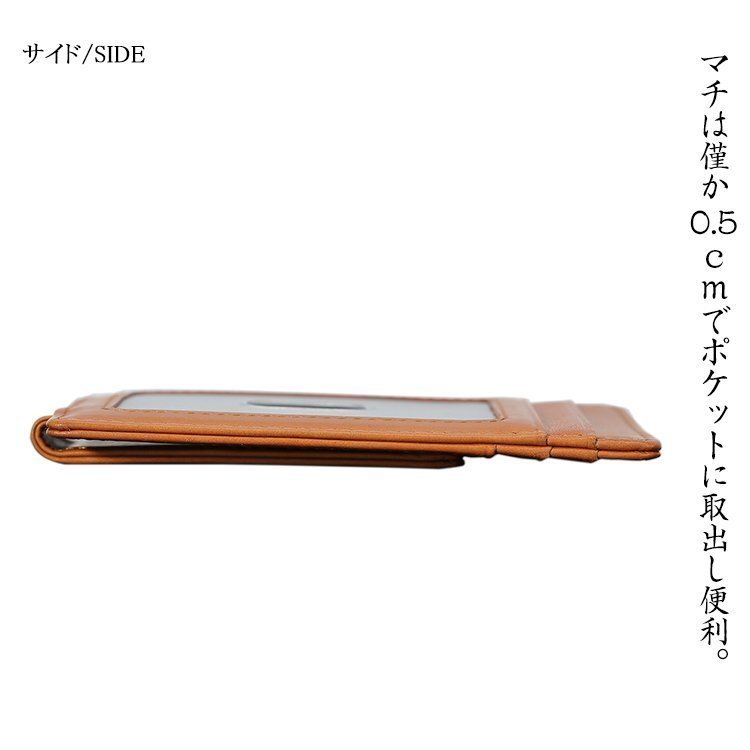 OHJ1632☆キャメル メンズ 本革 マネークリップ 札挾 カード入れあり スキミング防止