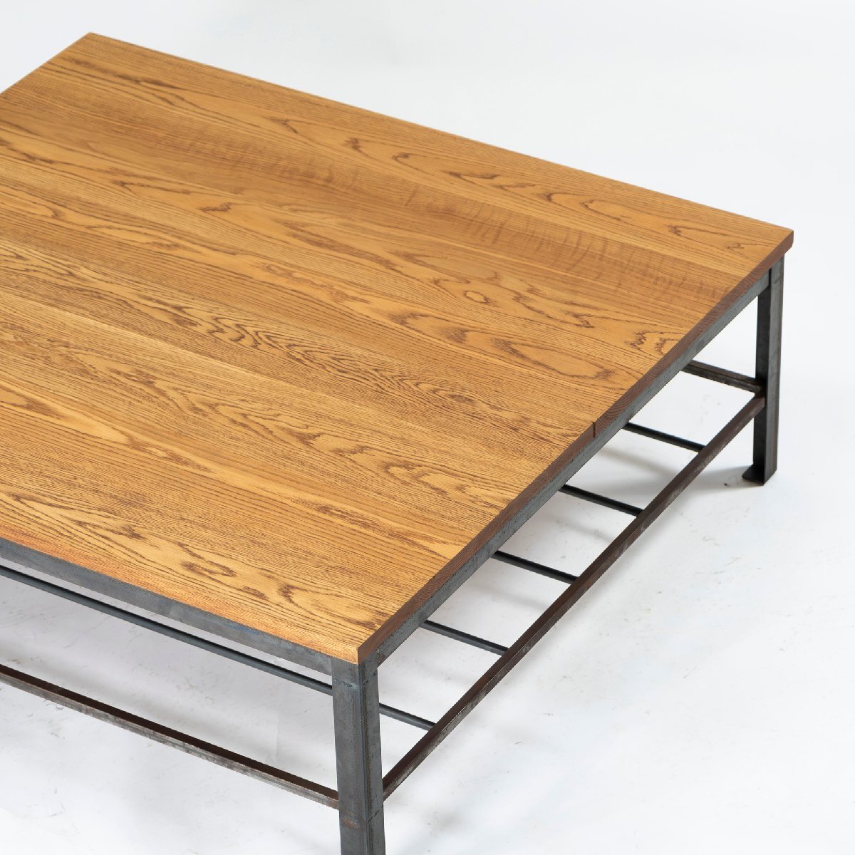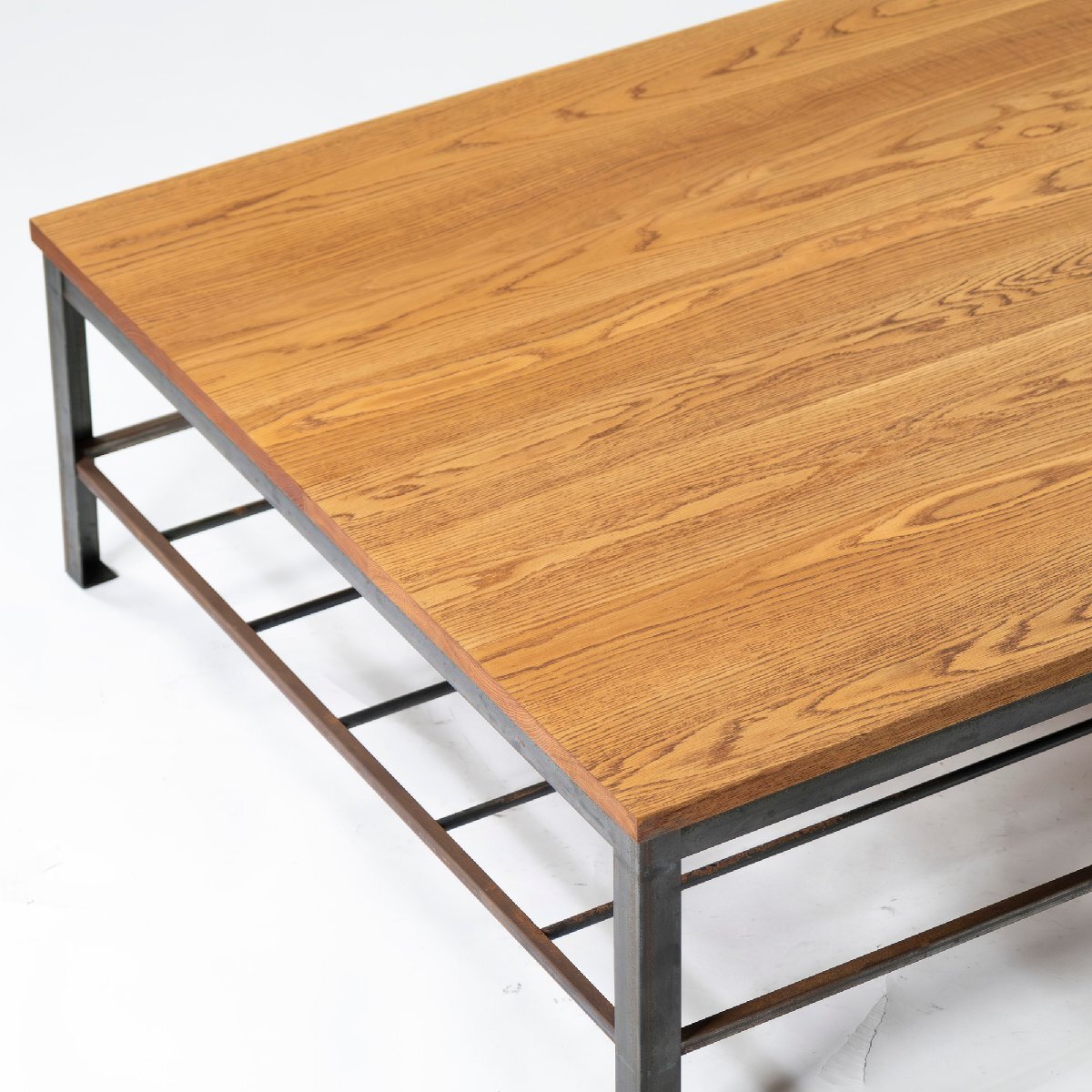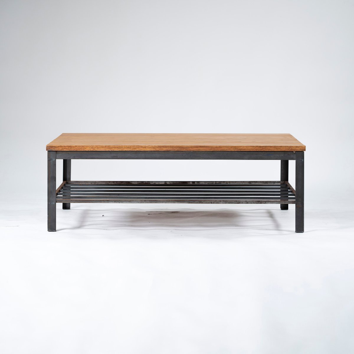 オーク無垢材とアイアンを組み合わせた重厚感が魅力のインダストリアルデザインセンターテーブル。