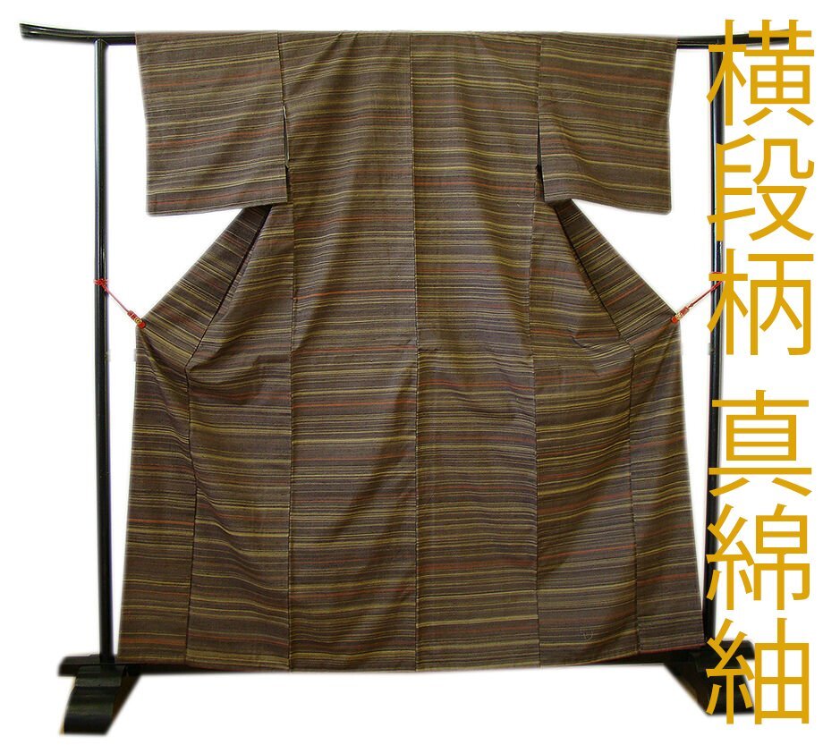 ★超大特価★S寸!帯や小物次第で様々な表情をお愉しみ頂ける逸品! 暮らしのお洒落着に重宝する横段柄の真綿紬の紬着尺(正絹) L015★ | |