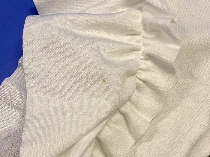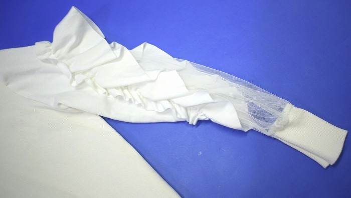 「PRIVE JOKE (プライブジョーク)」の モックネック 袖 フリル シースルー 切替 ニットです。