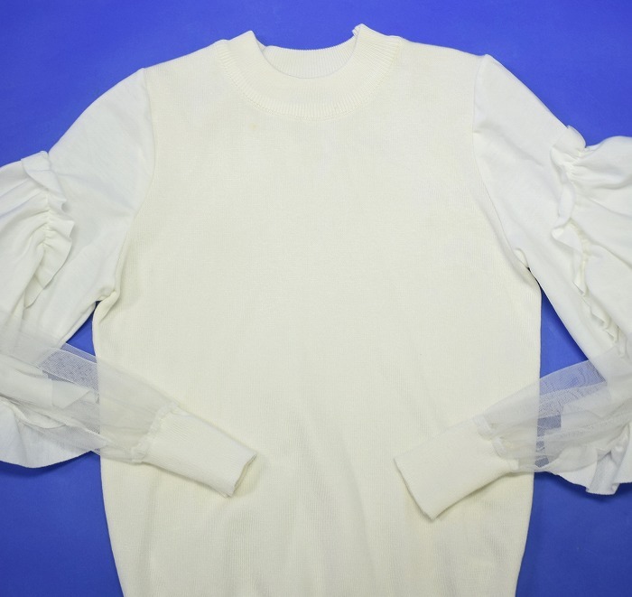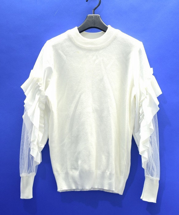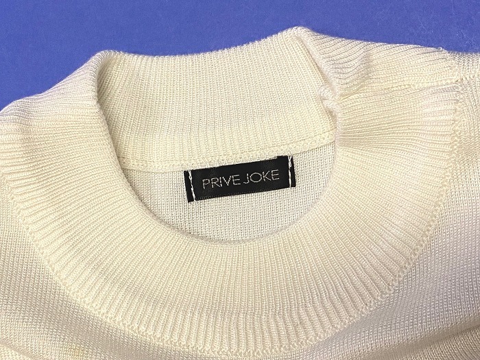 「PRIVE JOKE (プライブジョーク)」の モックネック 袖 フリル シースルー 切替 ニットです。