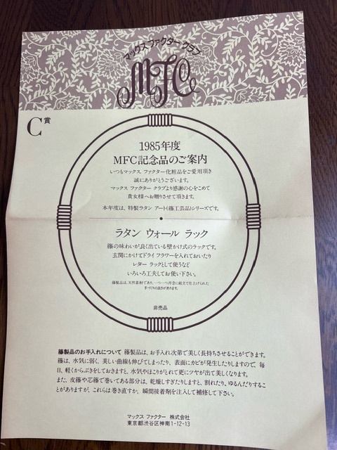 商品説明 | 【非売品/マックスファクタークラブ 1985年度 MFC記念品 C賞 ラタンウォールラック】 特製ラタン アート(藤工芸品)シリーズ 天然素材 非売品 高さ25センチ 幅 21センチ 奥行9センチ こちらの商品は保管期間があります。 保管に伴う多少の傷、汚れ等ある場合もございますことをご理解の上、ご入札お願い致します |