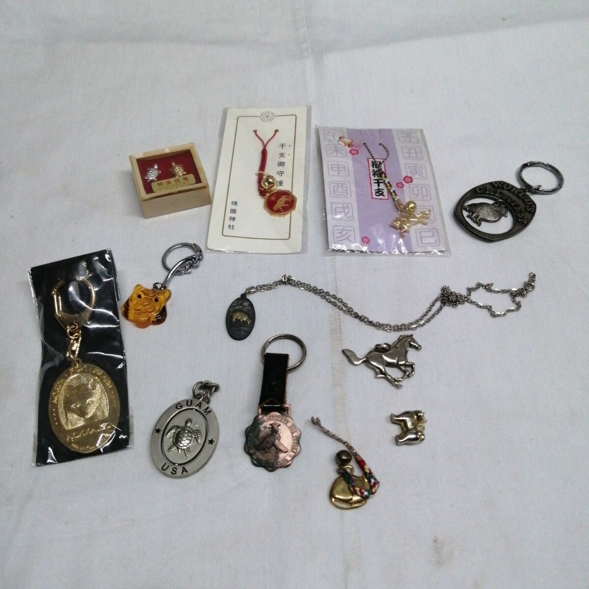 まとめて 動物 キーホルダー 開運銭亀 タイガー 馬 犬 亀 キツネ 干支 送料600円可能