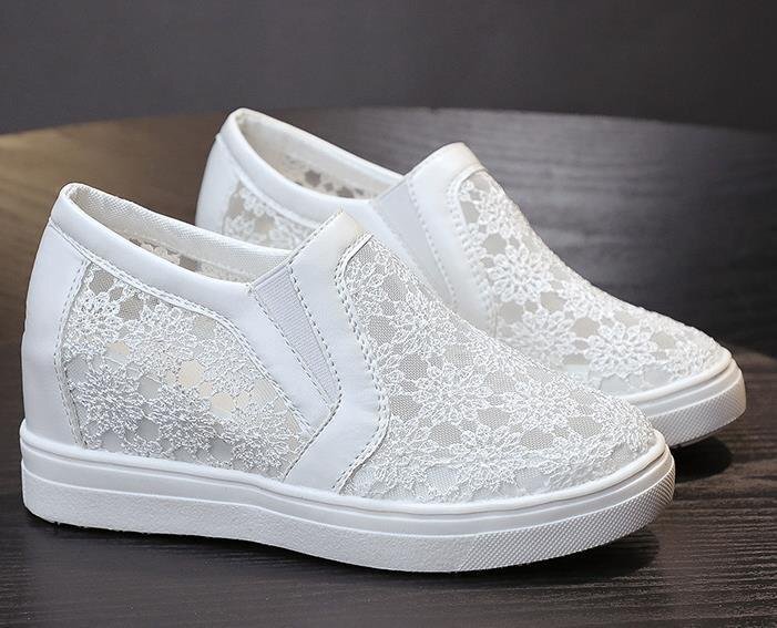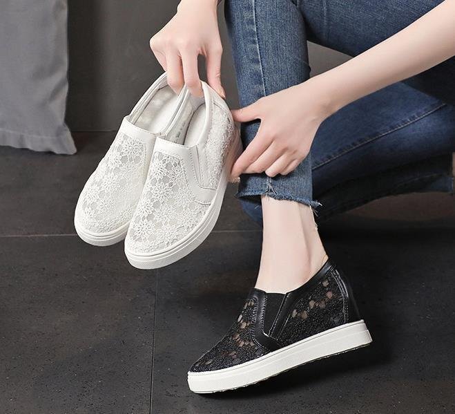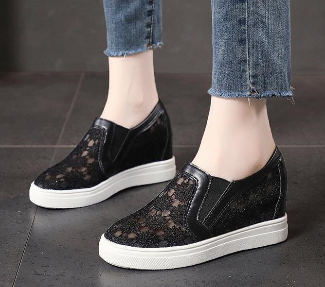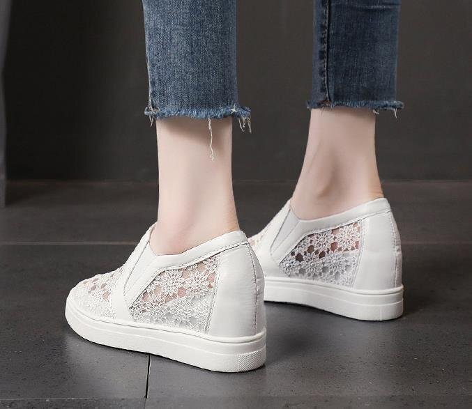 OHJ1455☆インヒール スニーカー スリッポン ローファー レディース 厚底 メーシュ 通気 カジュアル 花柄 おしゃれ