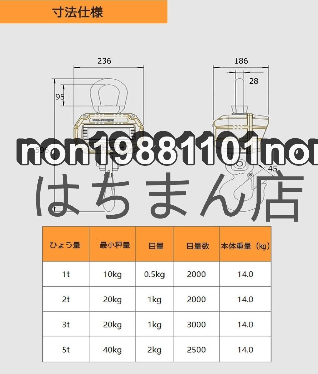 クレーンスケール 吊りはかり デジタル 高精度 LCD表示 電子クレーンスケール ホールド 風袋引き機能 無線距離20m 耐久性がある