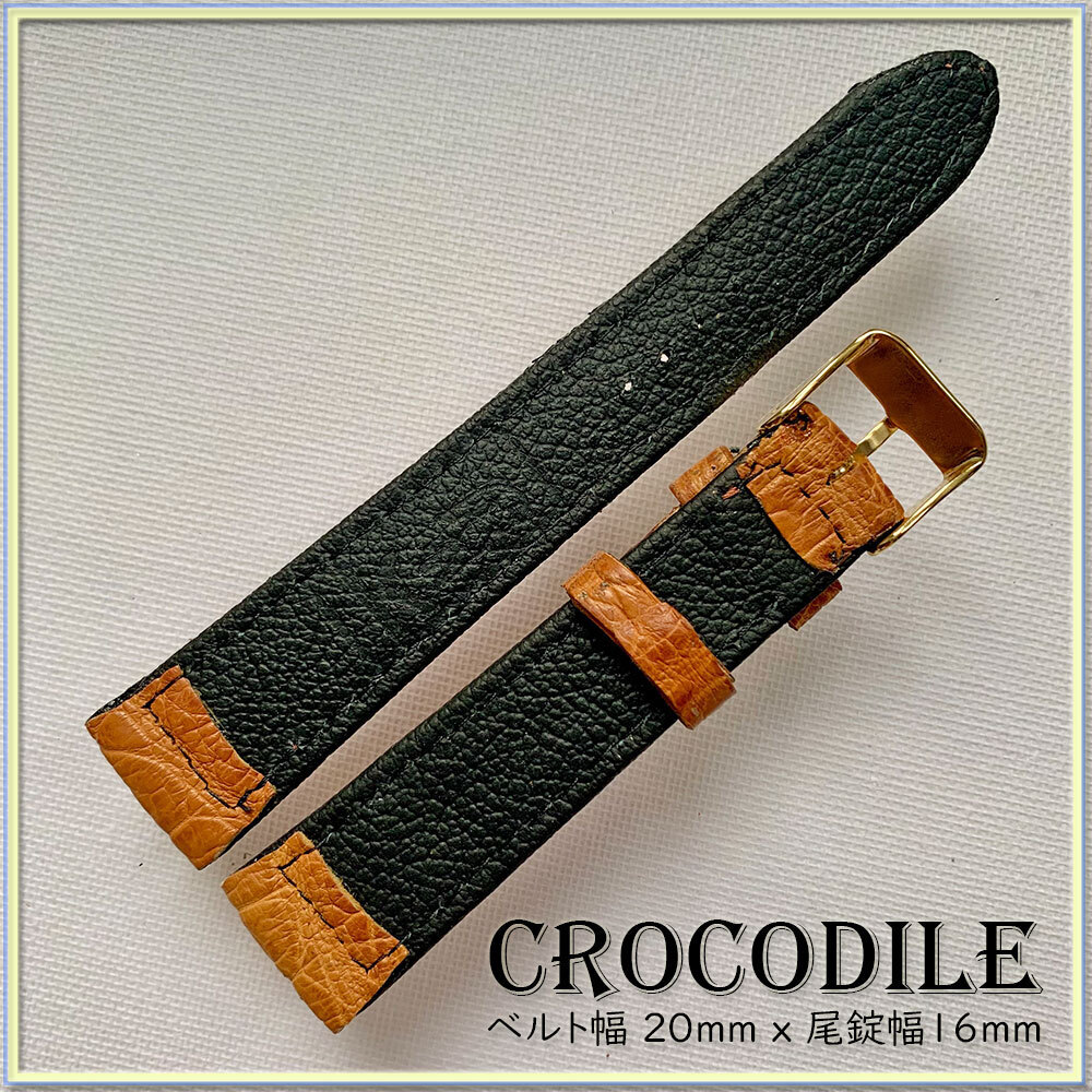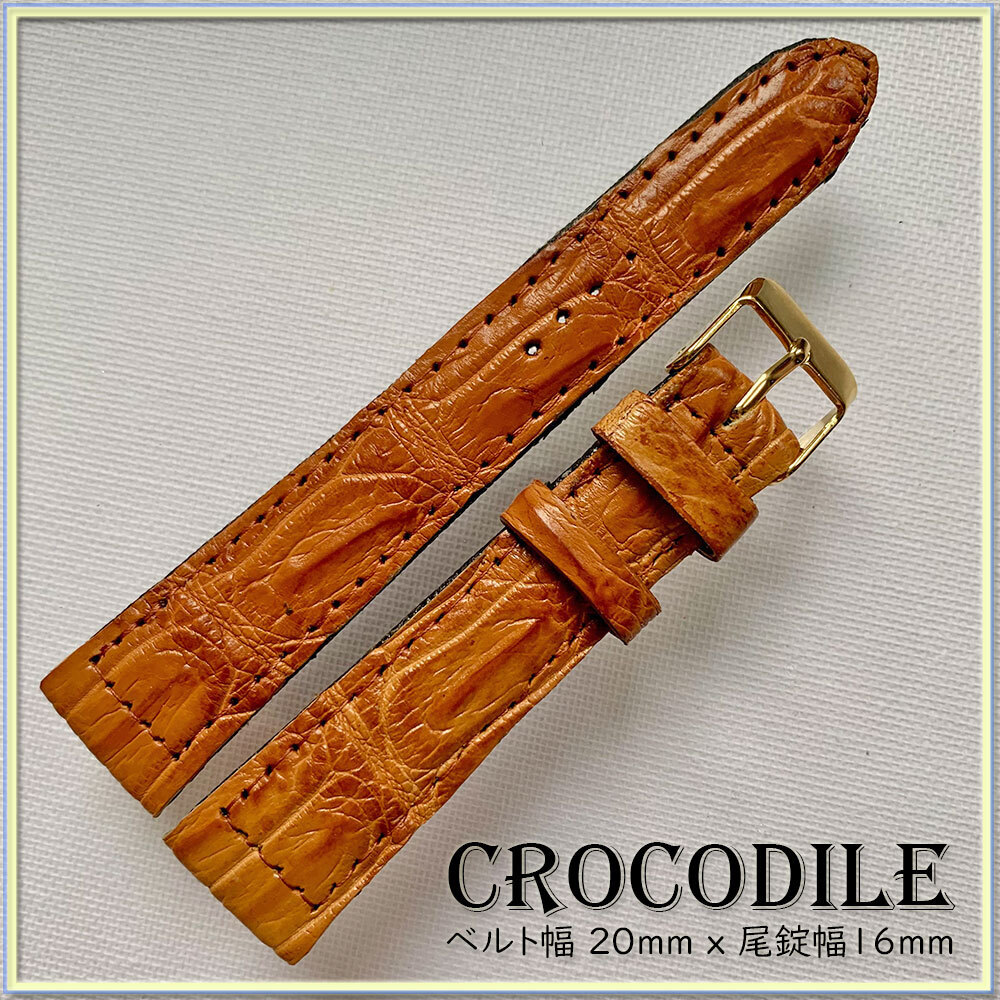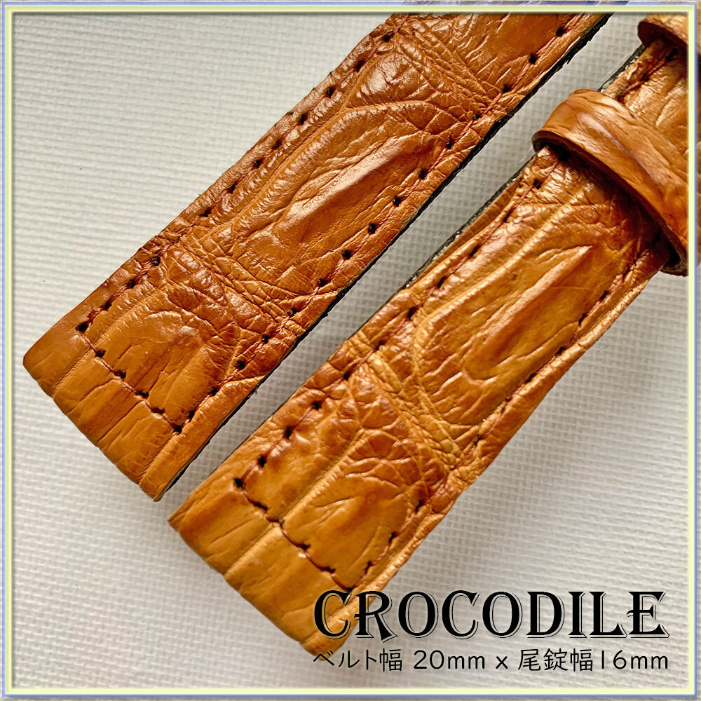 SALE!20mm 本革 クロコダイル ワニ革 時計ベルト イタリアンブラウン ITALIAN BROWN 高品質 1点物 別注 背ワニ模様 HANDMADE 職人技