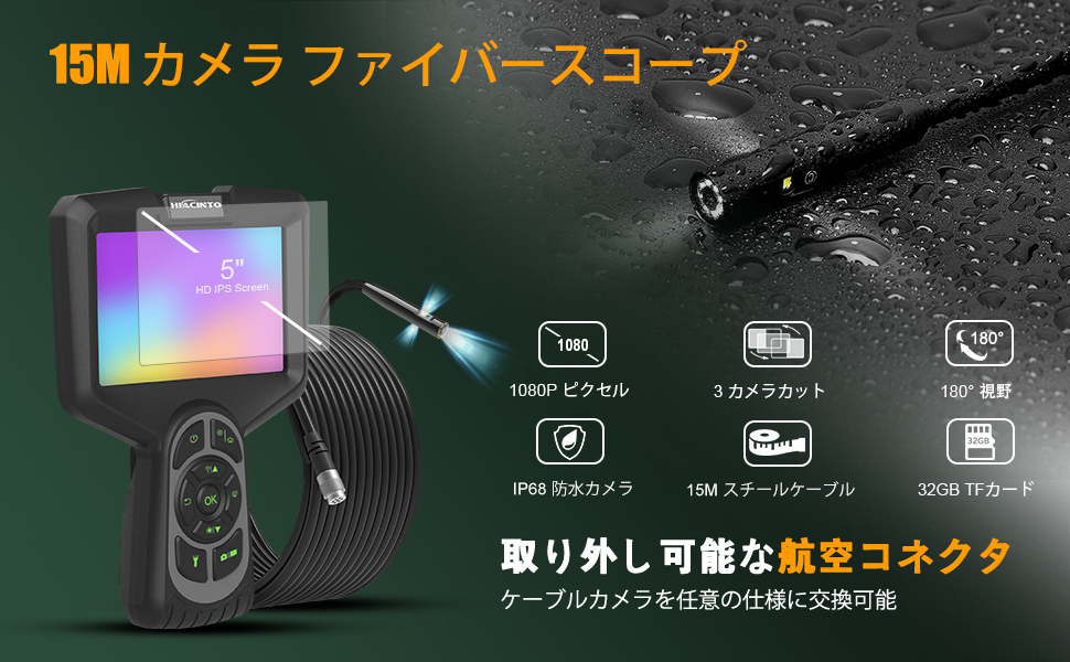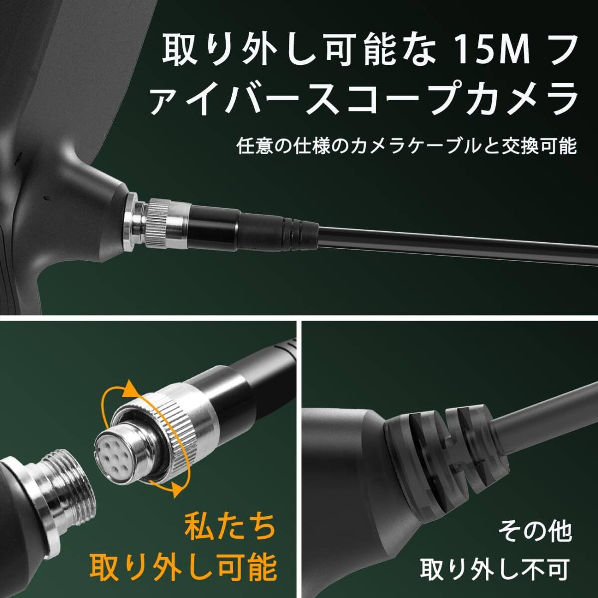 Hiacinto 15M着脱式ファイバースコープ デジタル内視鏡 HD 1080P 検査カメラ 工業用内視鏡 5.0インチIPSスクリーン付き 20M剛性ケーブル